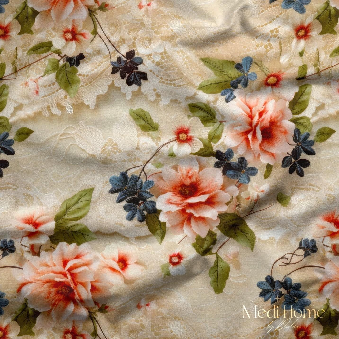 Dantel Üzerinde Bahar Çiçekleri Dijital Baskılı Kumaş (MB-0161)