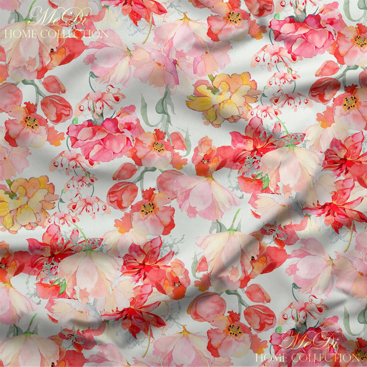 Su gibi yumuşak tonlarla dans eden kırmızı, pembe ve sarı açelya çiçekleri. Açık zemin üzerinde akvarel etkisiyle dağılan bu desen, bir tablo gibi zarif ve romantik. Hem gündelik keyfi hem de sofistike detayları sevenlerin gönlünü fethediyor. Fon perde, masa örtüsü, yastık ya da zarif döşemeler için ideal.
