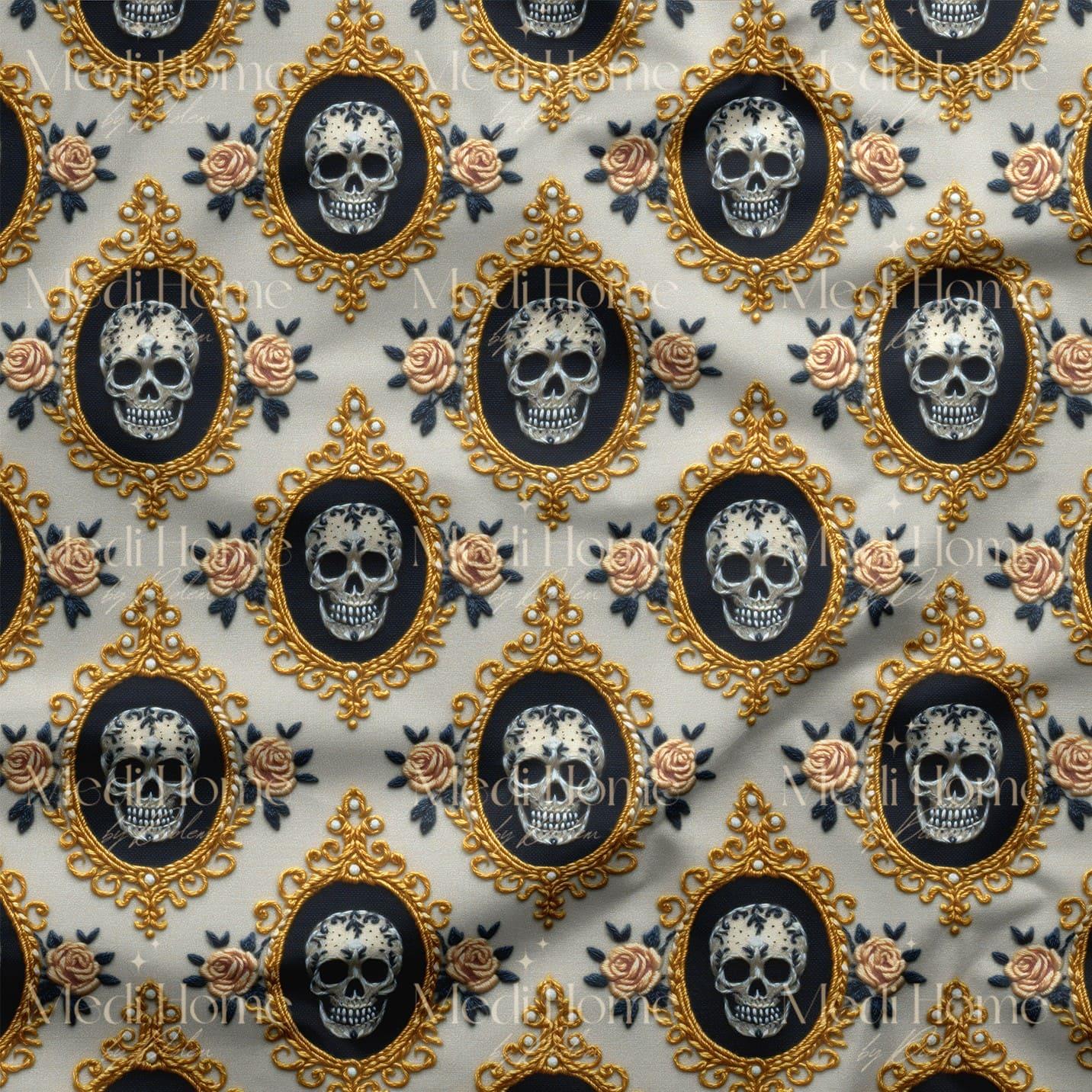 Altın Çerçevedeki Gotik Kafatasları Dijital Baskılı Kumaş (Untitled_Artwork 1833)