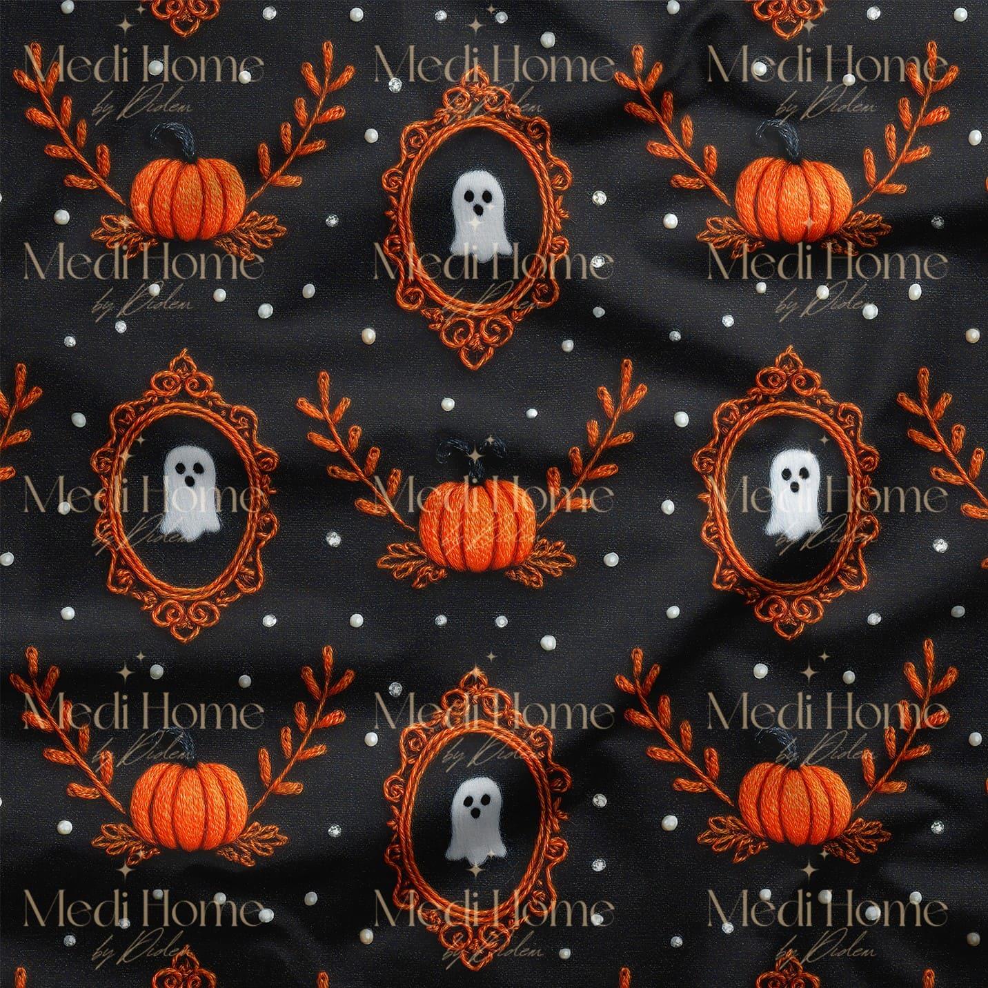 Balkabağı Çerçevesindeki Sevimli Hayaletler Dijital Baskılı Kumaş (Untitled_Artwork 1846)