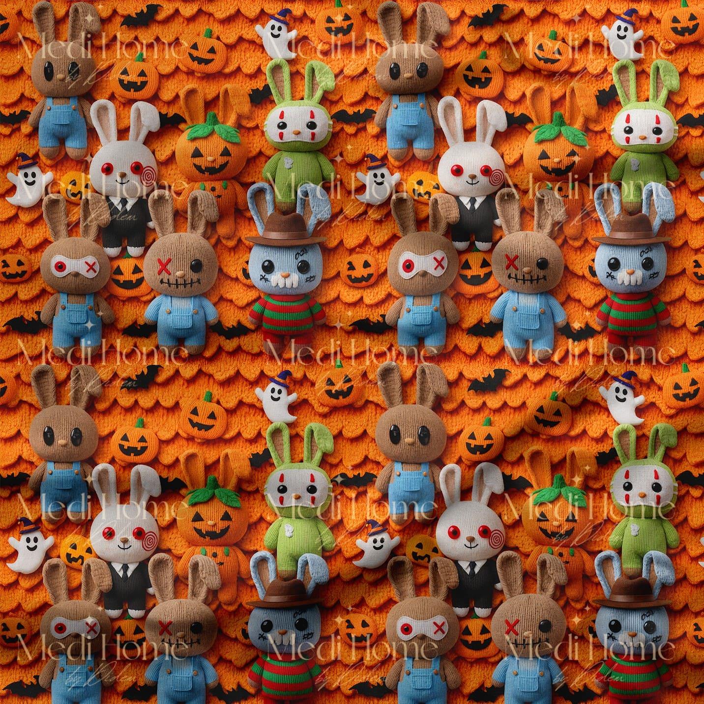 Balkabakları Arasında Tavşanların Halloween Partisi Dijital Baskılı Kumaş (MB halloween 05)