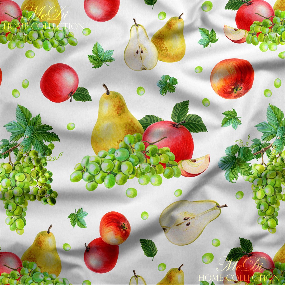 Elma, Armut ve Üzüm Desenli Dijital Baskılı Kumaş