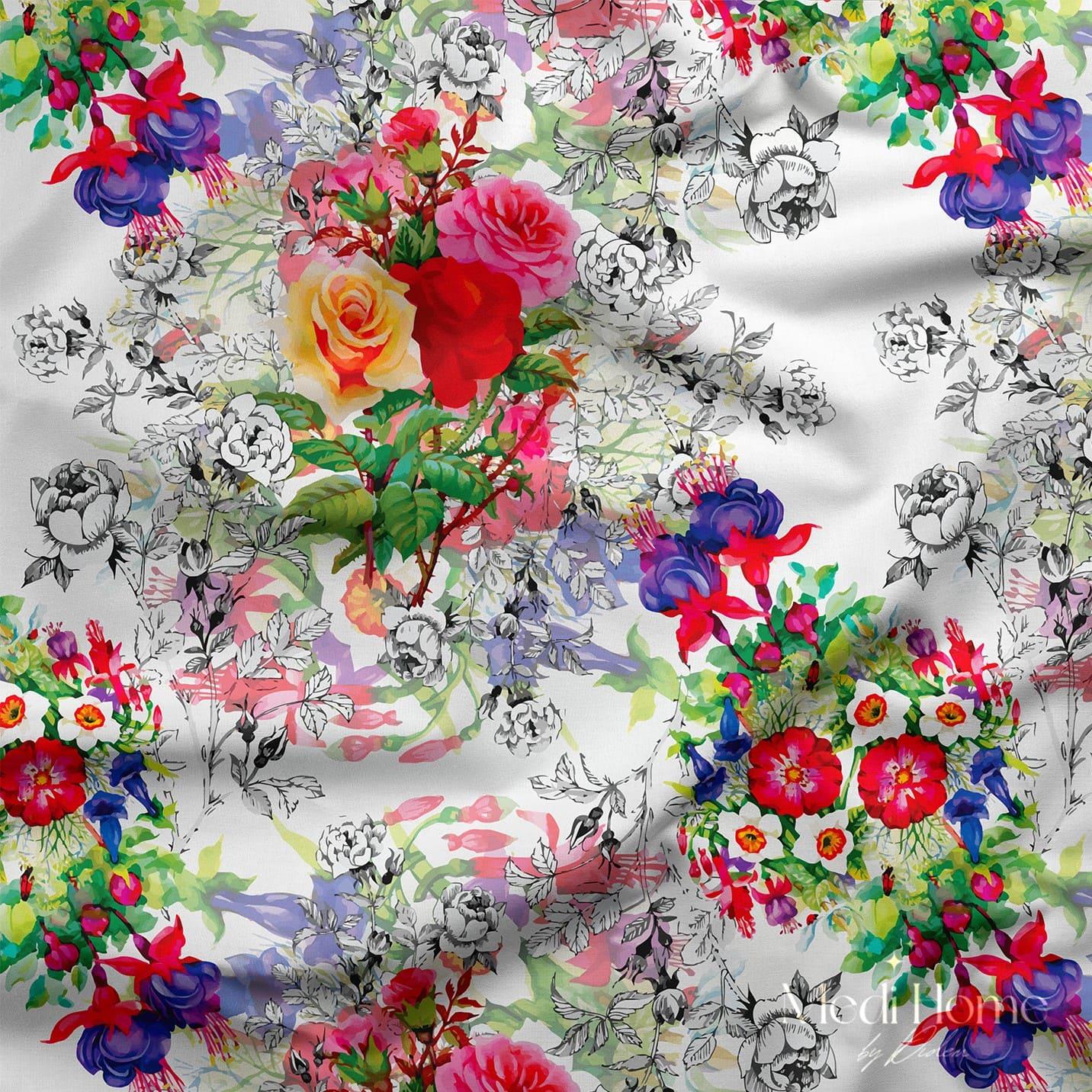 Eskiz Defterinde Renkli Güller Dijital Baskılı Kumaş