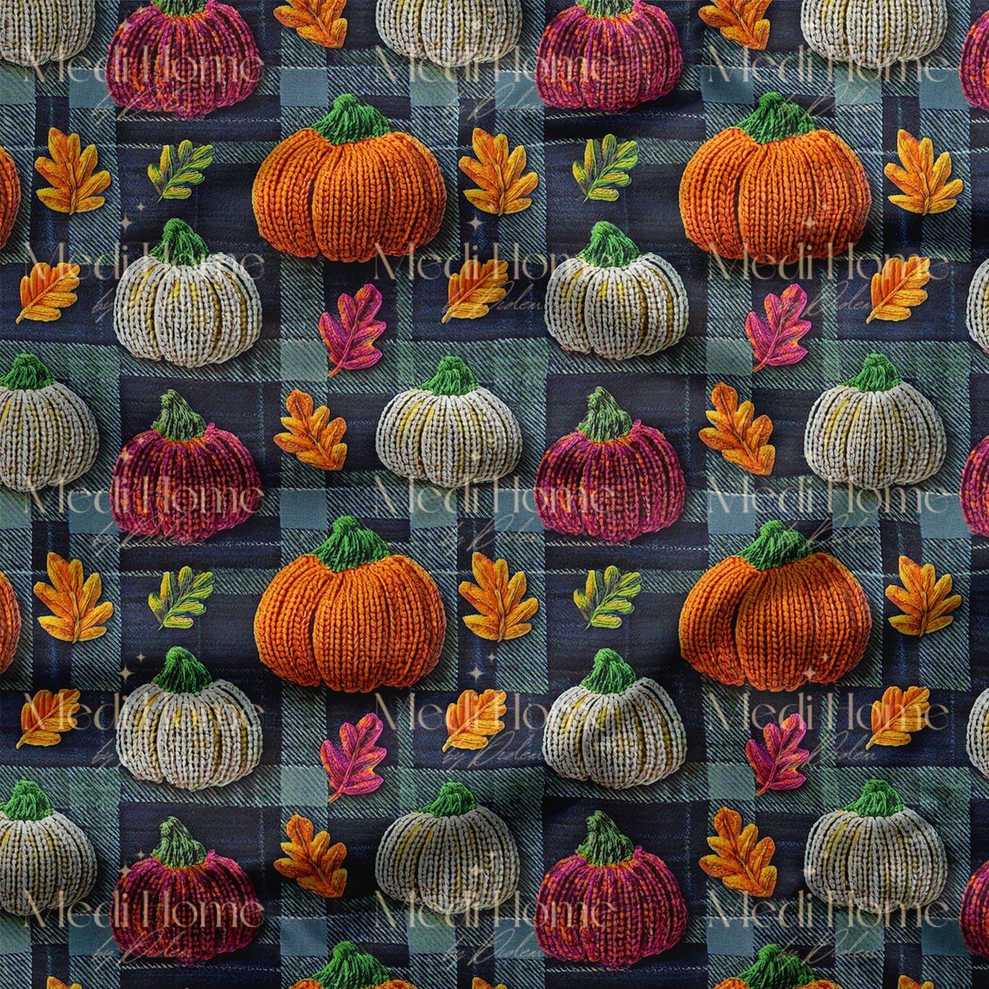 Gece Ekosesinde Sonbahar Balkabakları Dijital Baskılı Kumaş (Embroidered Pumpkins Plaids-10)