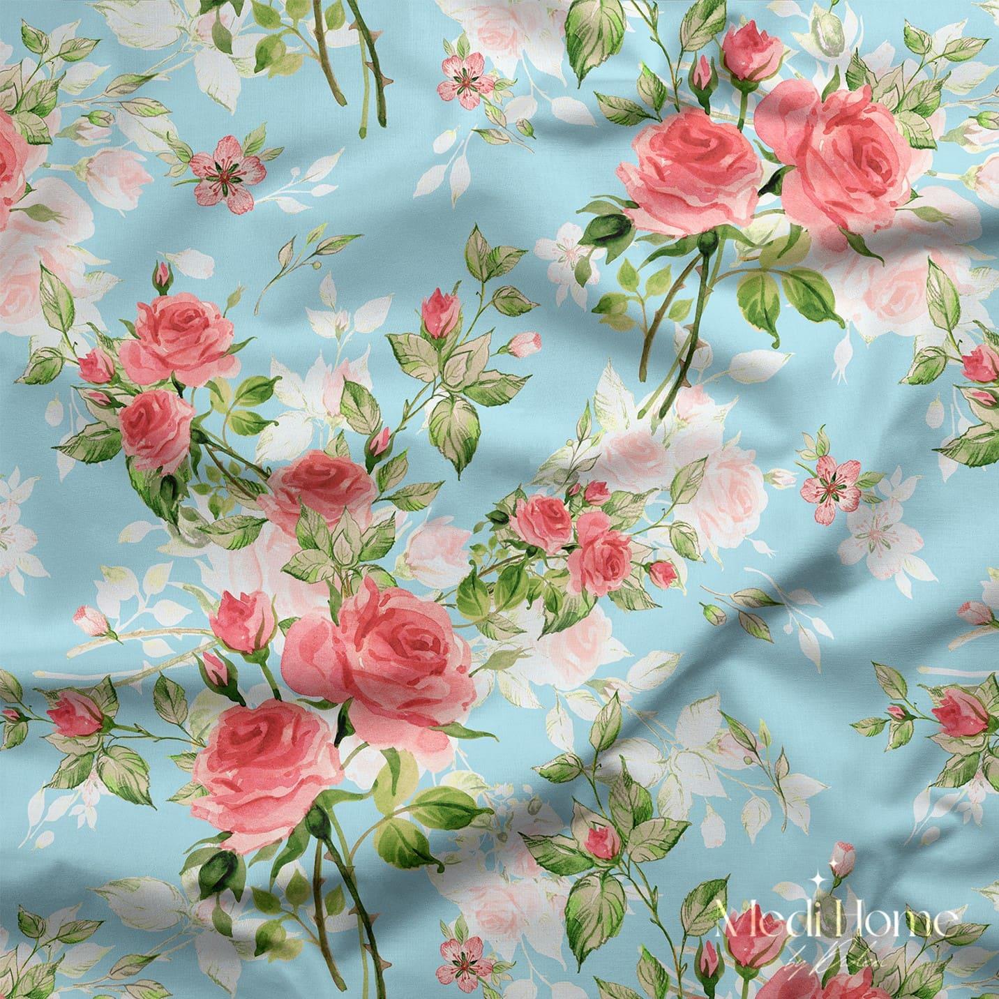 Güllerle Mavi Bir Sabah Dijital Baskılı Kumaş (ROSE 1157)