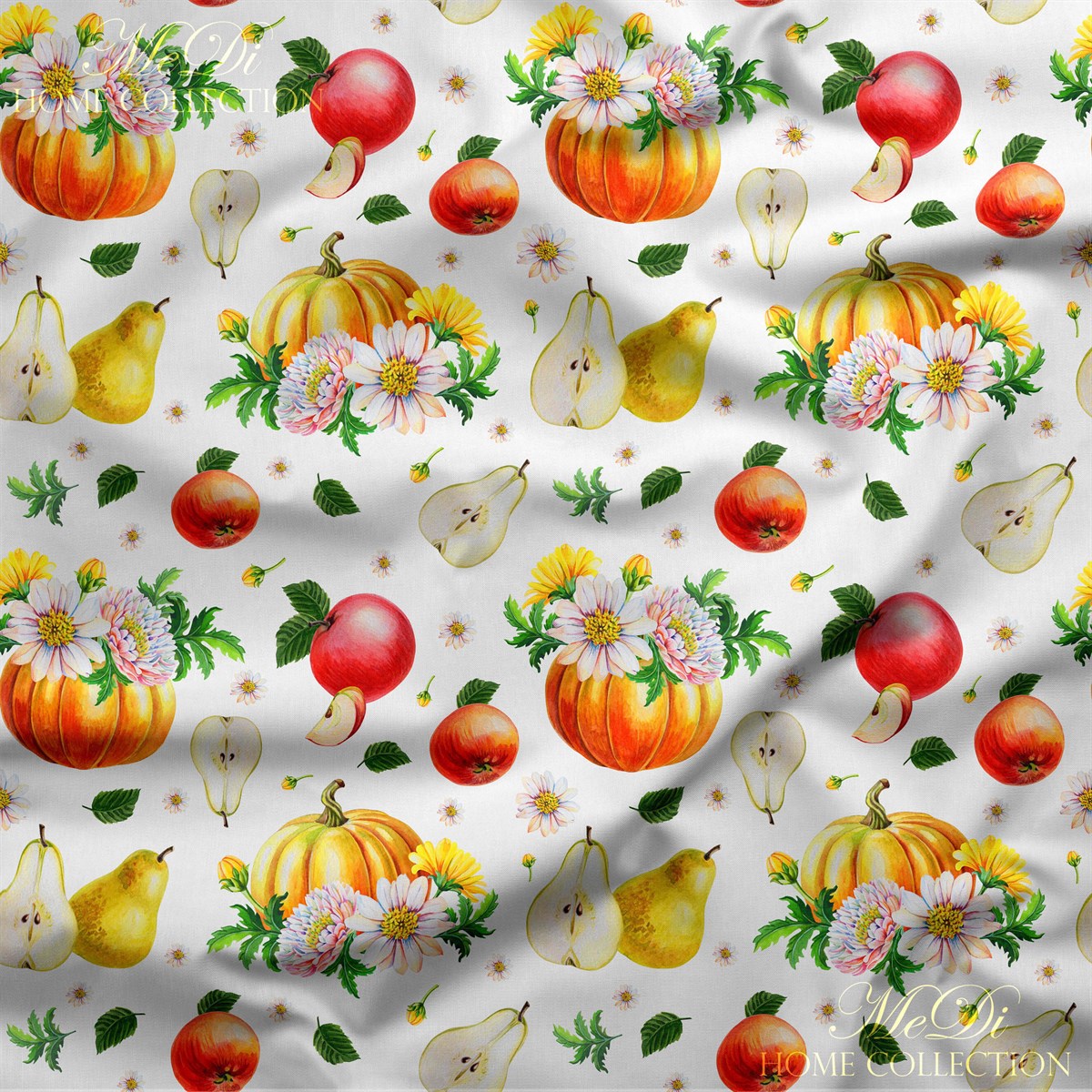 Bal Kabağı, Elma ve Armut Desenli Dijital Baskılı Kumaş