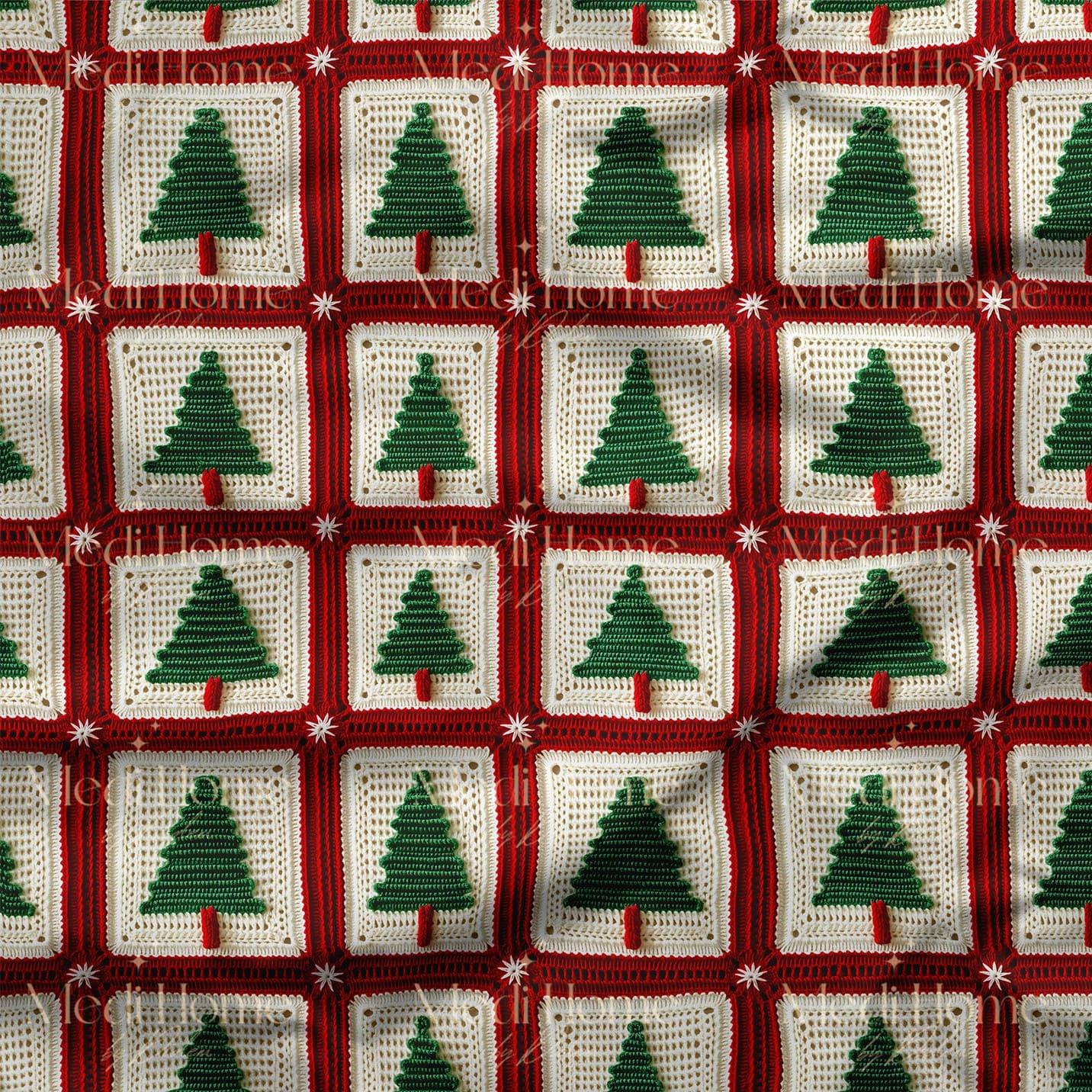 Kare motifli örgü görünümüyle tasarlanan bu 3 boyutlu desen, her bir karenin içinde yer alan yılbaşı çamlarıyla nostaljik ve sıcak bir atmosfer yaratıyor. Kırmızı fon, beyaz çerçeve ve yeşil çam ağaçlarının birleşimi, adeta el emeği örgü bir battaniye veya masa örtüsü havası veriyor. Kış mevsiminin ruhunu dekorasyonunuza taşımak için ideal.
