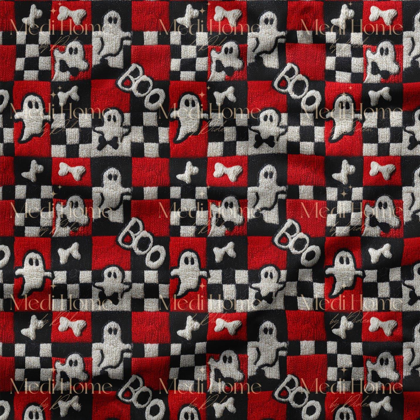 Karelerde Boo! ve Hayalet Eğlencesi Dijital Baskılı Kumaş (Untitled_Artwork 1561)