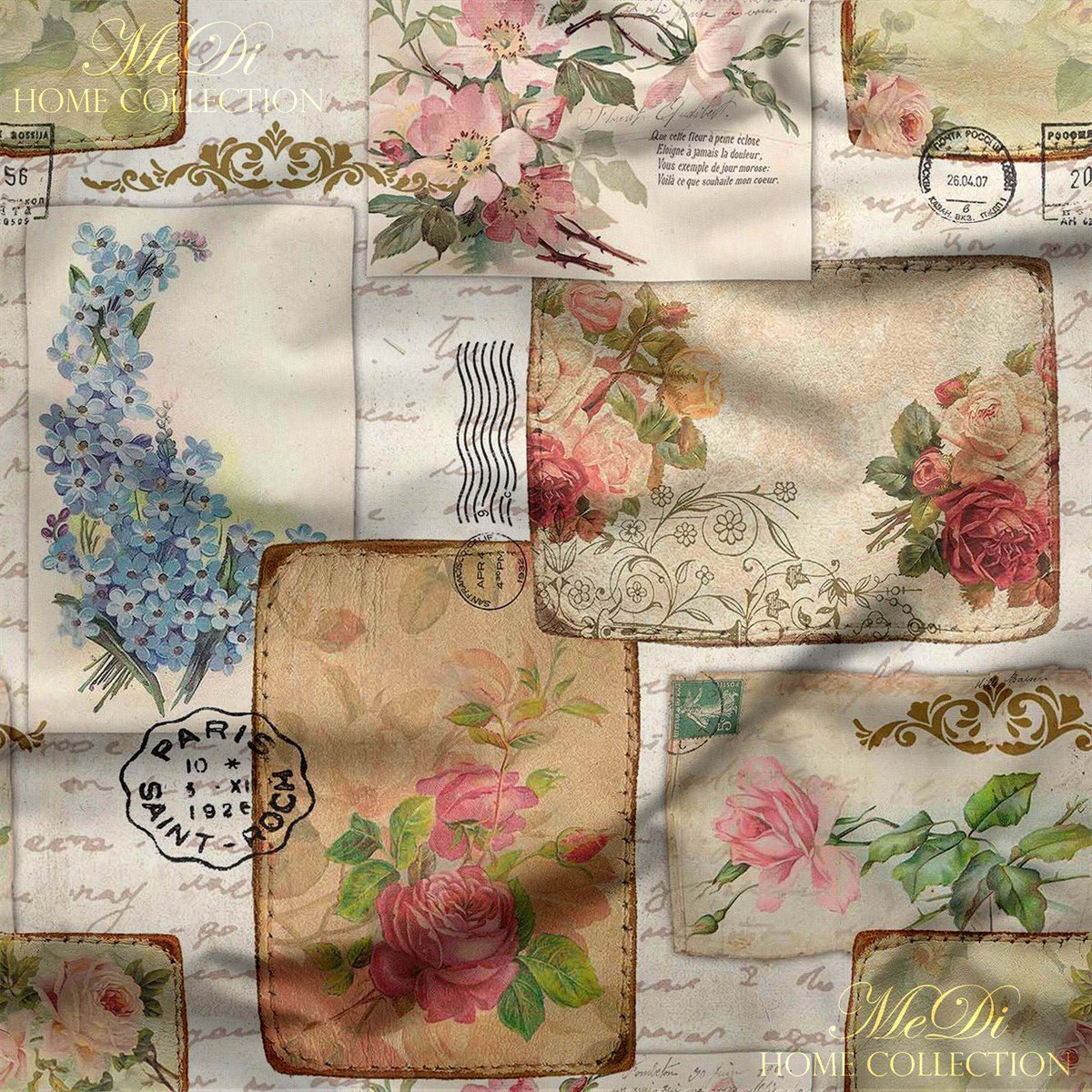 Kartpostallardaki Çiçekli Mektuplar Dijital Baskılı Kumaş (ZÜMRÜT 33)