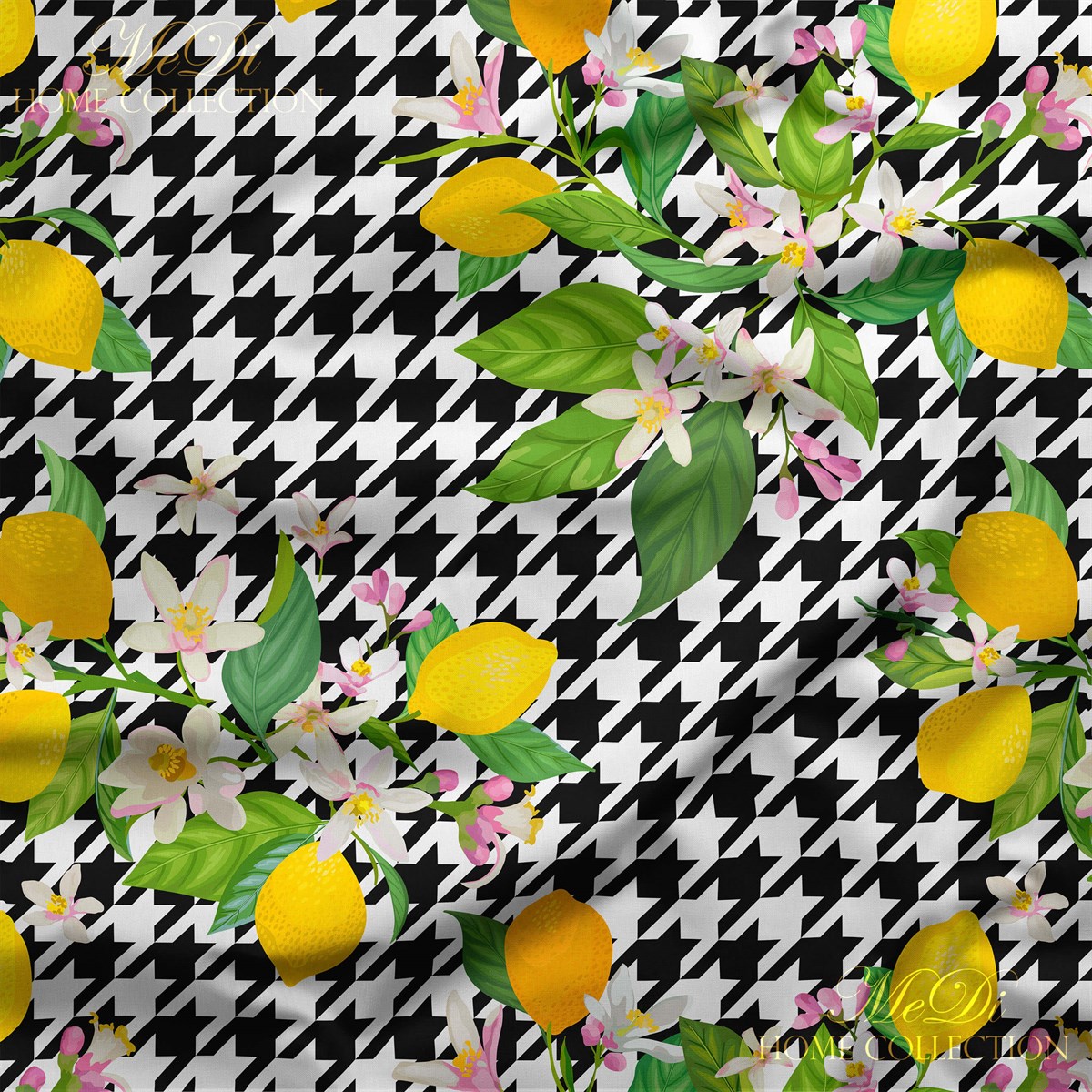 Kaz Ayağı Zemin, Limon Desenli Dijital Baskılı Kumaş