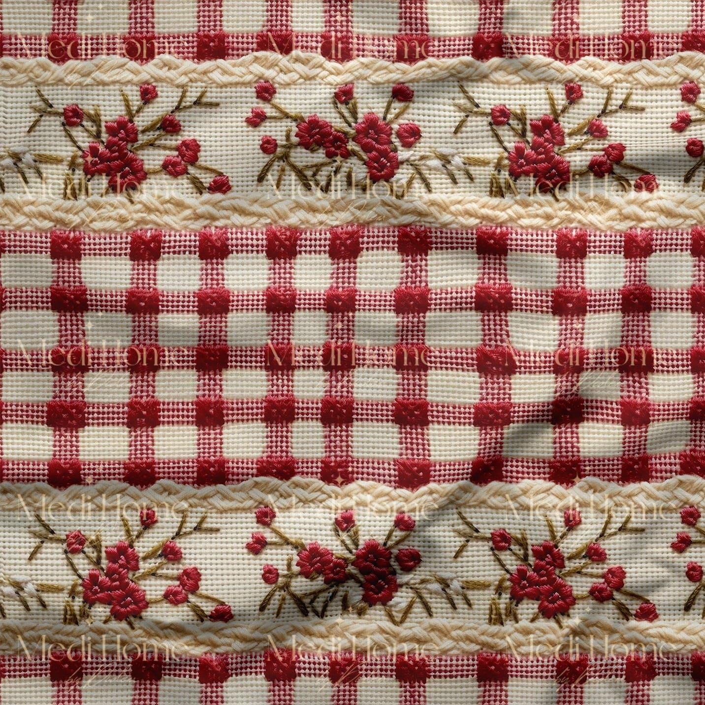 “Kırmızı Dama Üzerinde Dantel ve Kış Buketleri”, geleneksel dama deseninin rustik sıcaklığını, dantel zarafeti ve 3 boyutlu çiçek detaylarıyla buluşturan nostaljik bir kumaş hikâyesi. Kırmızı-beyaz dama zemin, ipliklerle işlenmiş bordo minik kış çiçekleri ve krem dantel şeritlerle romantik bir bütünlük kazanıyor. El emeğini andıran bu 3 boyutlu efekt, country tarzın sıcaklığını sofralara, mutfaklara ve dekoratif dokulara taşımak için tasarlandı.
