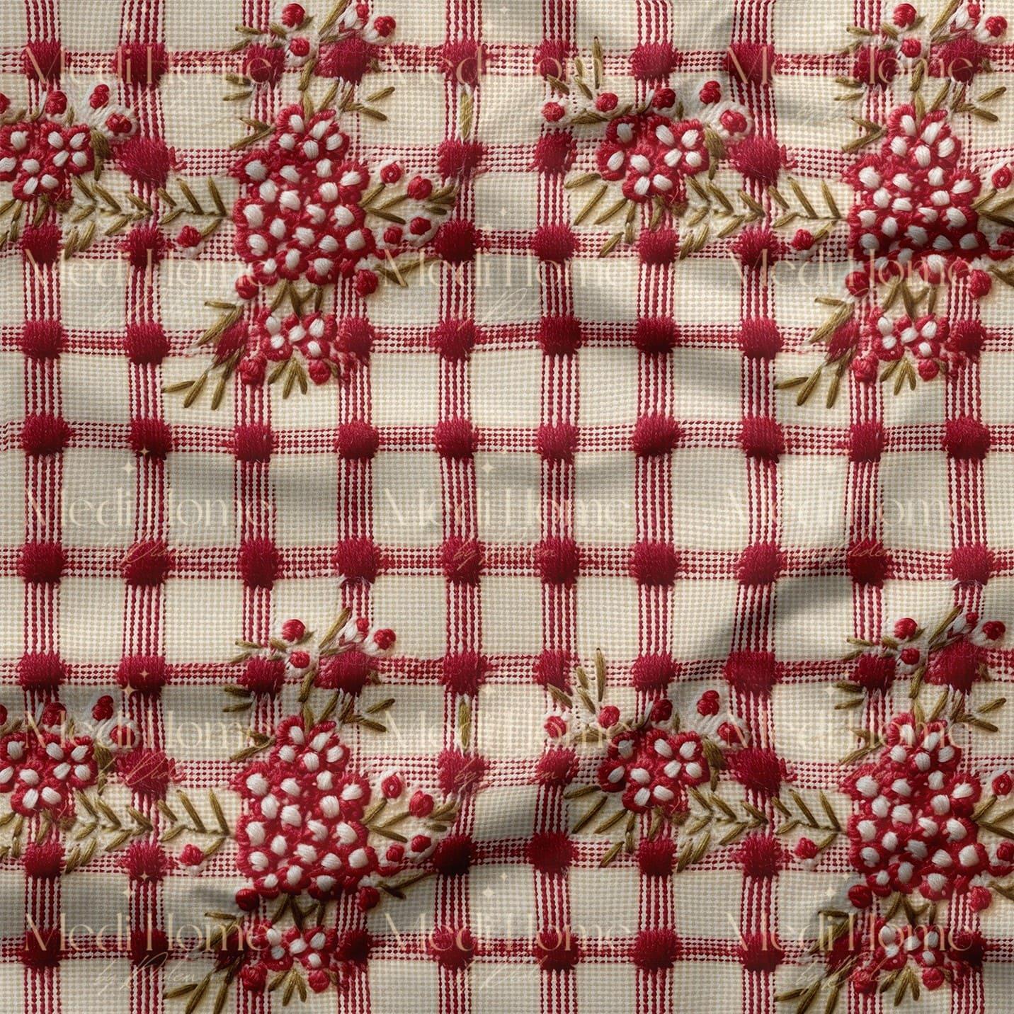 Kırmızı Dama Üzerinde Kış Çiçekleri Dijital Baskılı Kumaş (redtowel015)