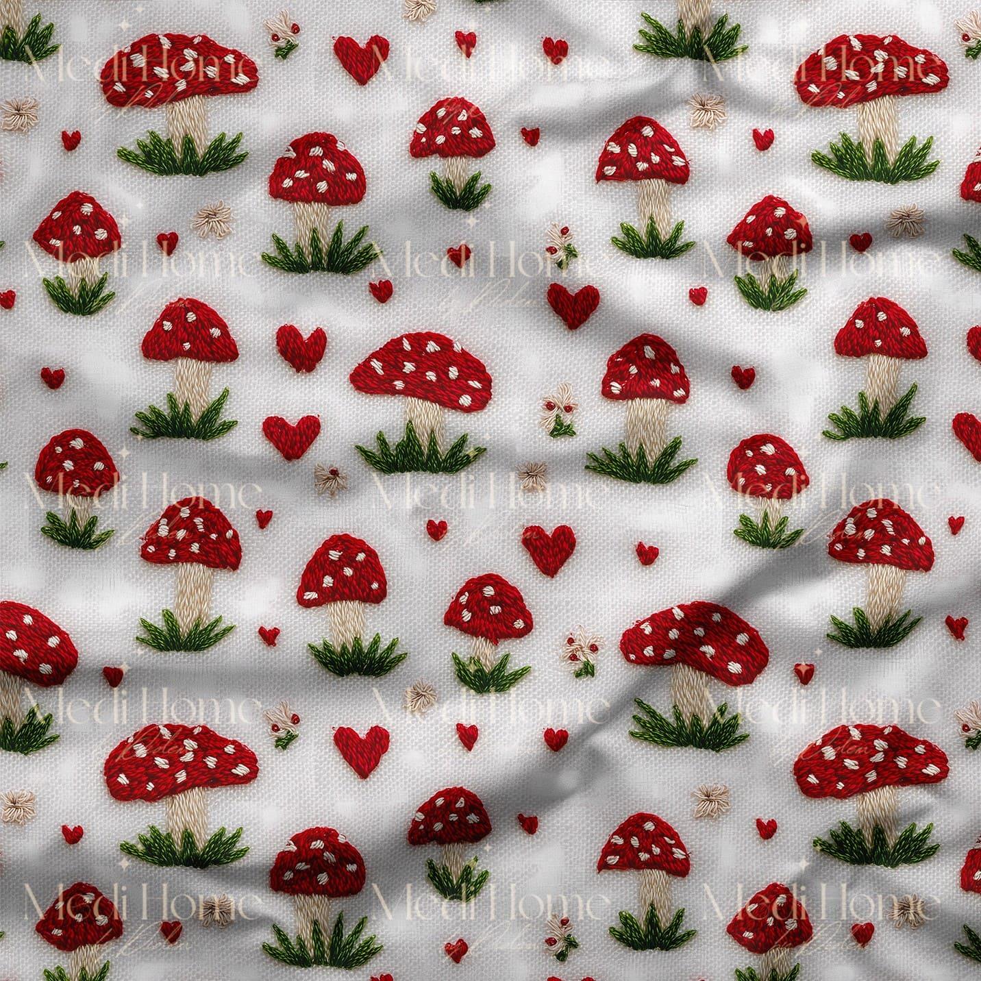 Kırmızı Mantarların Sevimli Bahçesi Dijital Baskılı Kumaş (Mushroom-5)