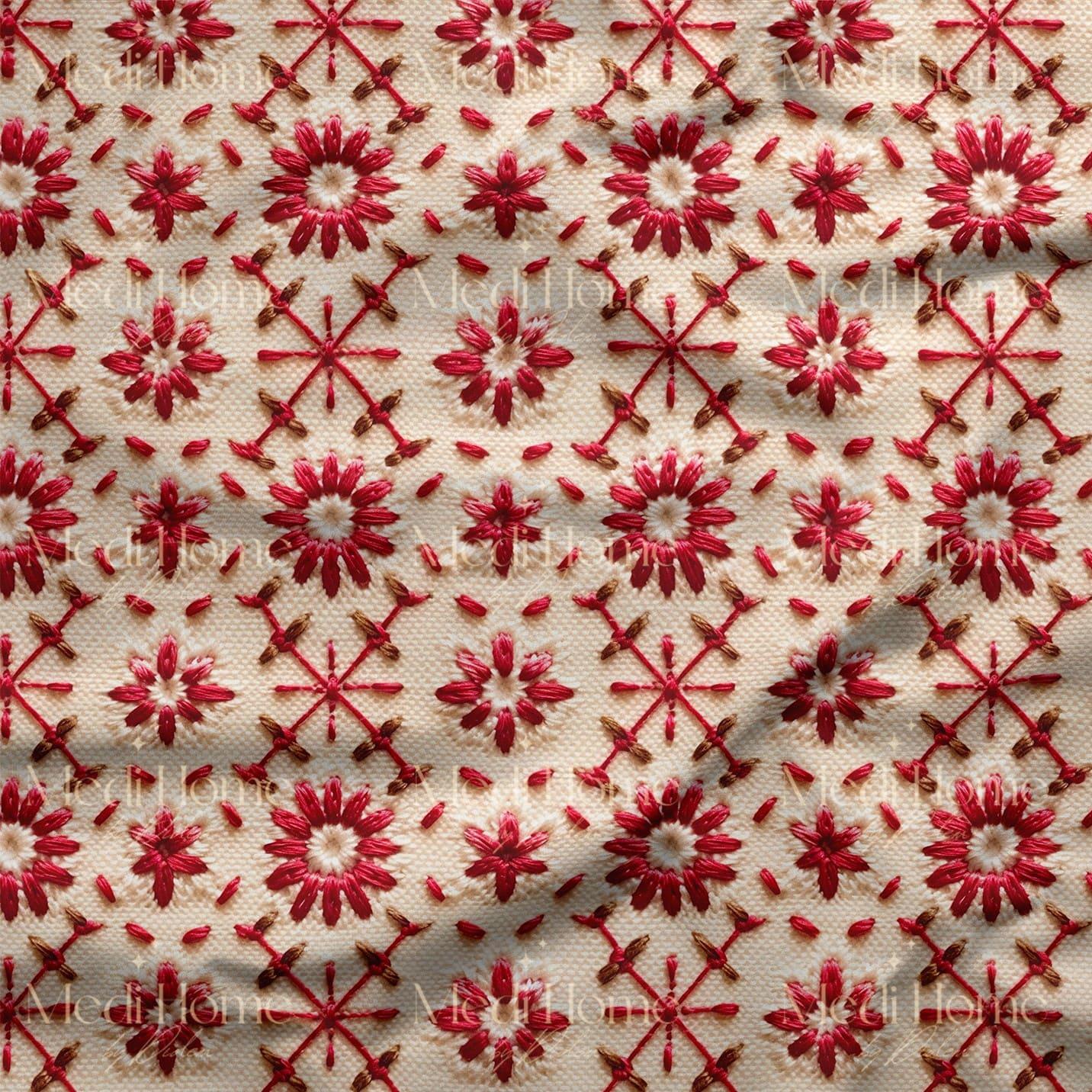 Kırmızı Nakışların Zarif Dansı Dijital Baskılı Kumaş