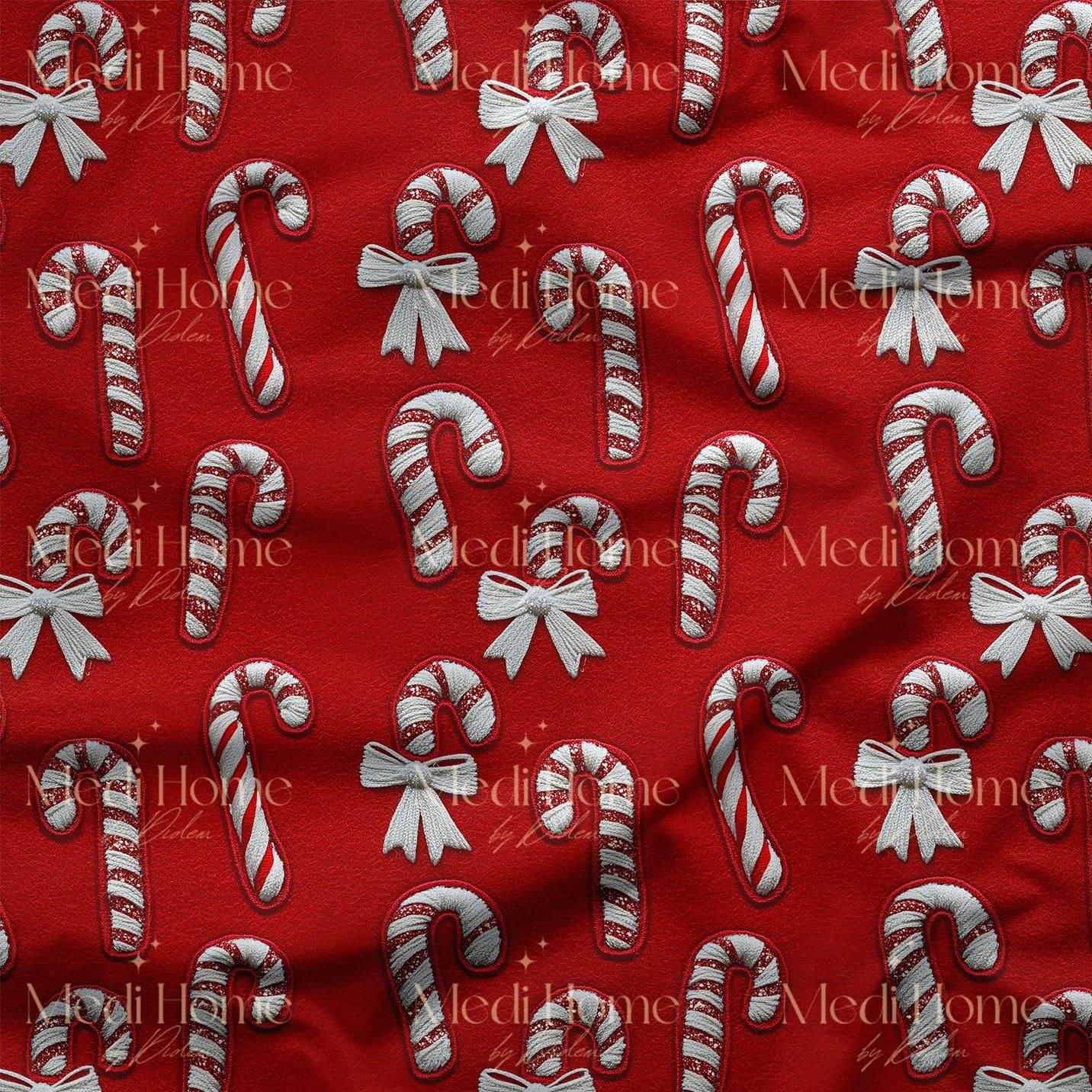 Kırmızı Şeker Çubuklarının Yılbaşı Dansı Dijital Baskılı Kumaş (Untitled_Artwork 110)