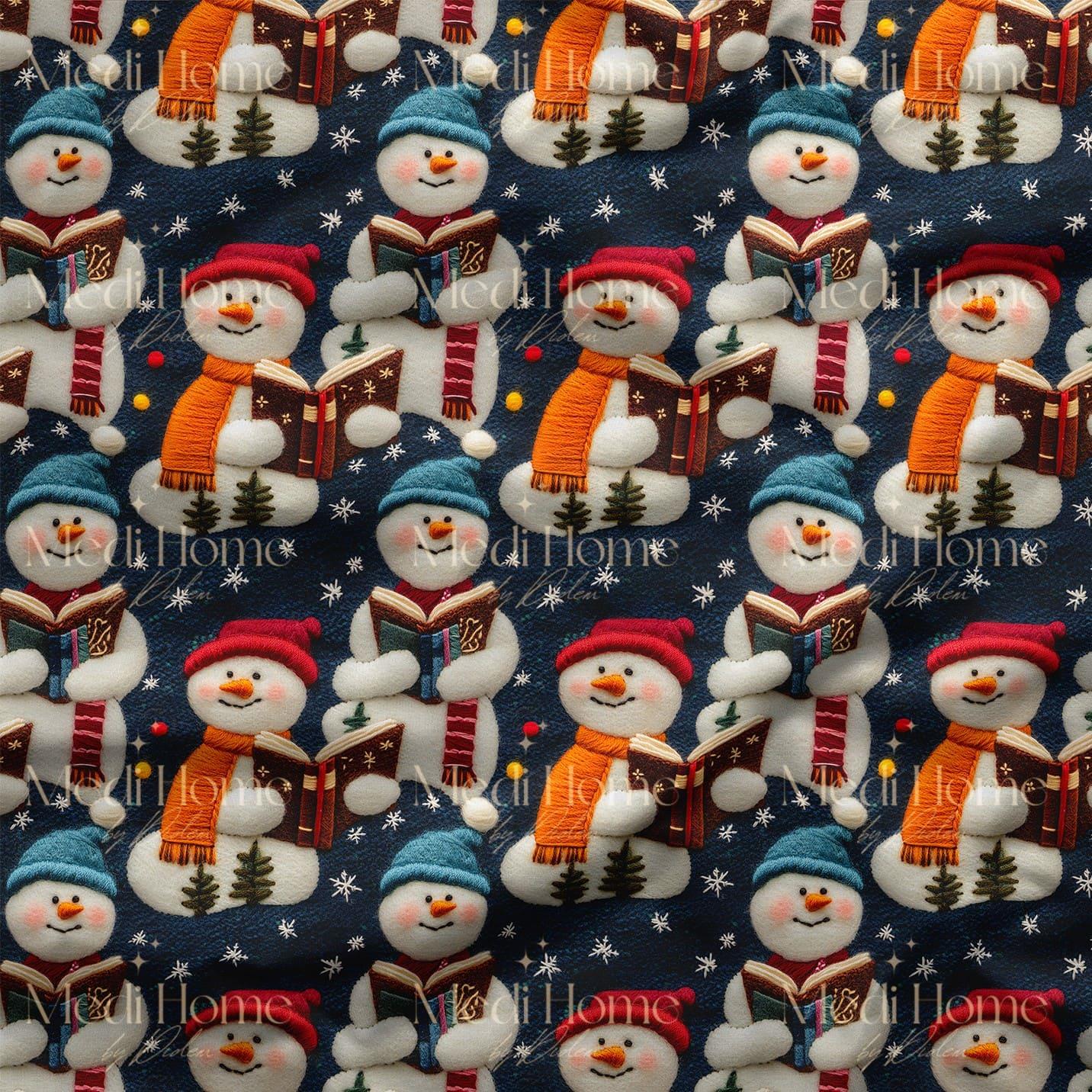 Kitap Okuyan Kardan Adamların Kışı Dijital Baskılı Kumaş (Untitled_Artwork 340)