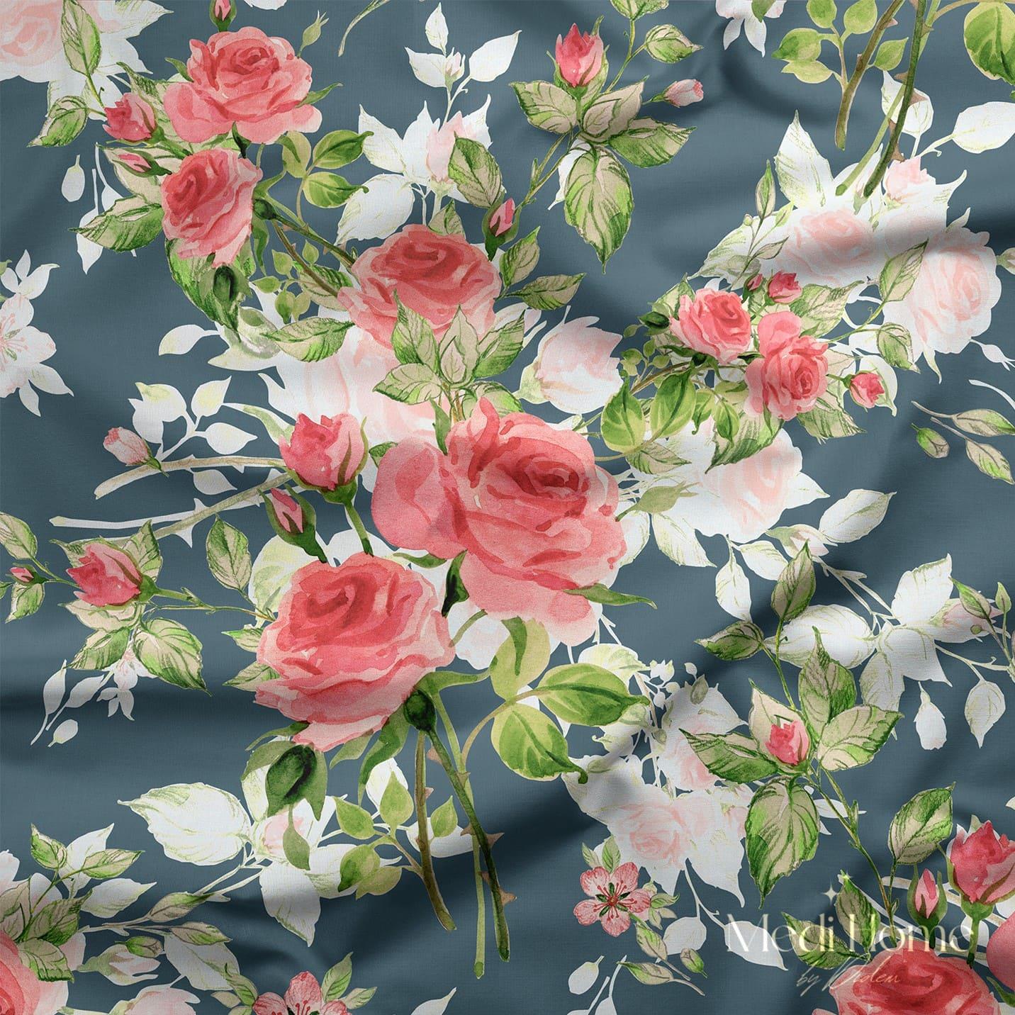 Koyu Fon Üzerinde Gül Bahçesi Masalı Dijital Baskılı Kumaş (ROSE 1158)