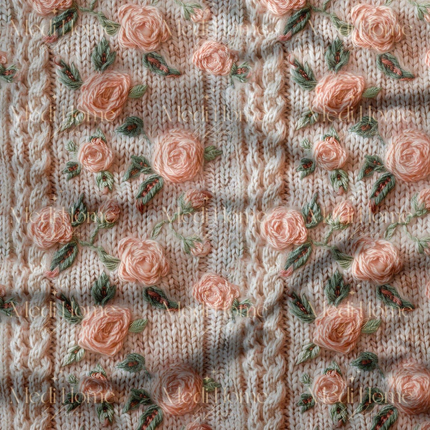 Pudra güllerin sıcaklığı ve krem örgünün yumuşacık hissi, evinize huzur dolu bir bahar esintisi getirsin.