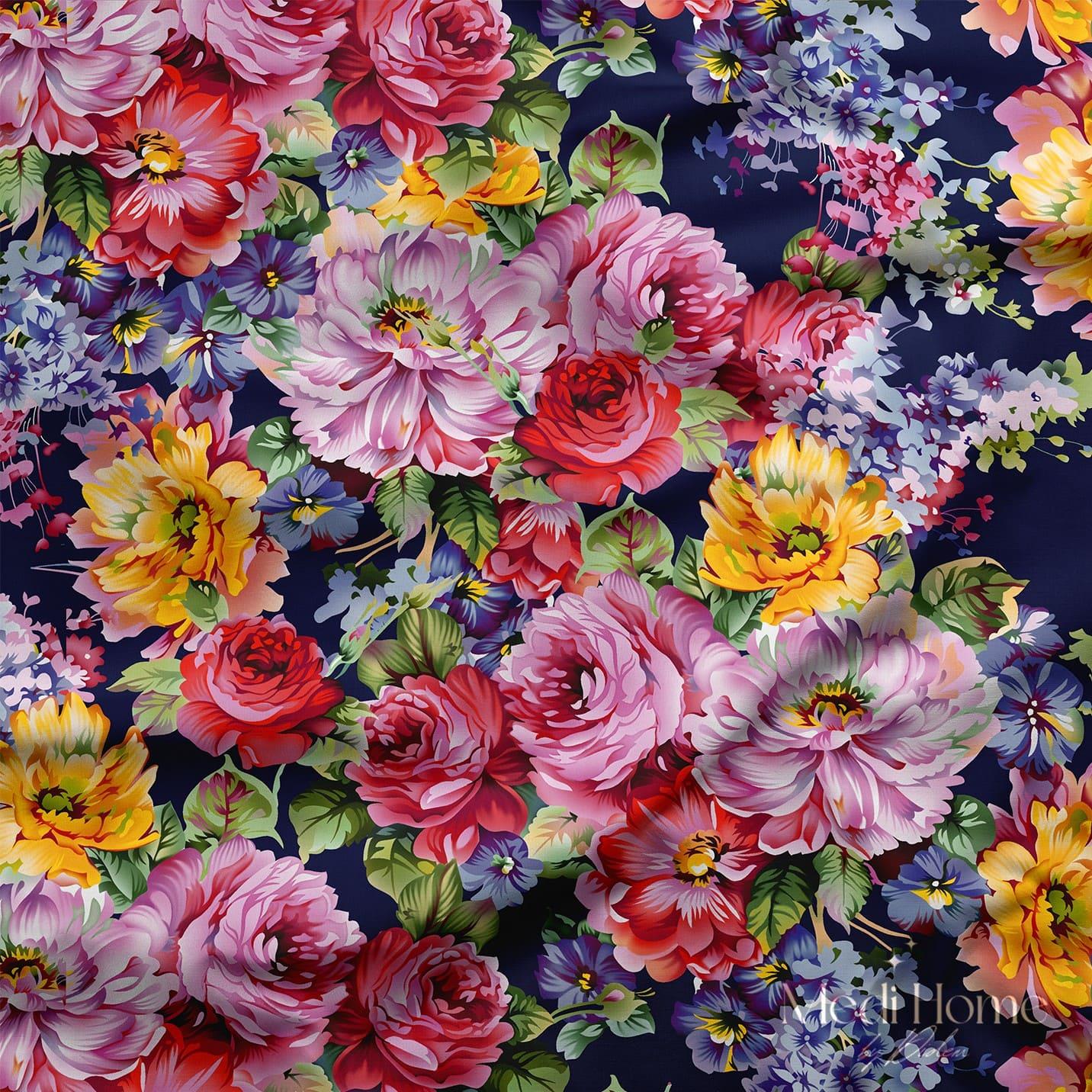 Lacivert Bahçede Renkli Kasımpatılar Dijital Baskılı Kumaş (ROSE 1445)