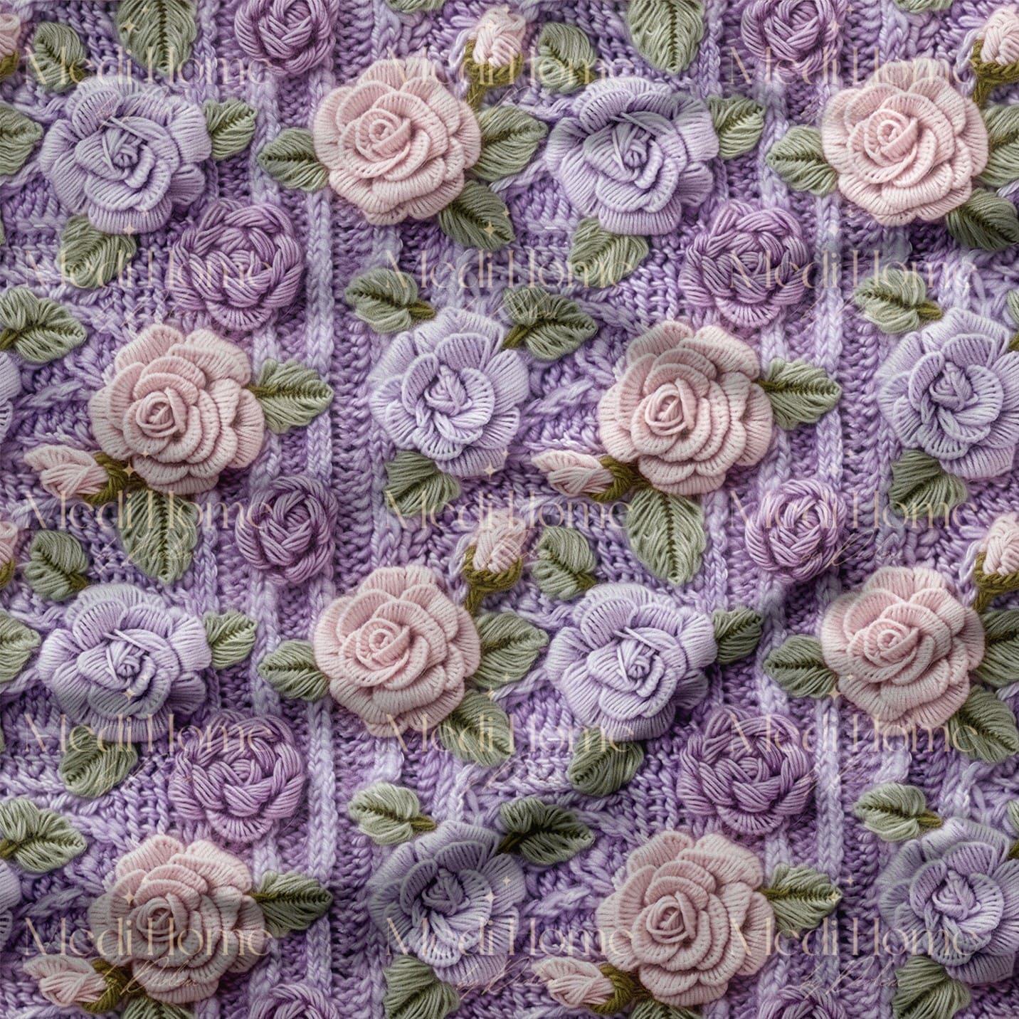 Lavanta Örgüde Gül Masalı Dijital Baskılı Kumaş (knitflor 18)