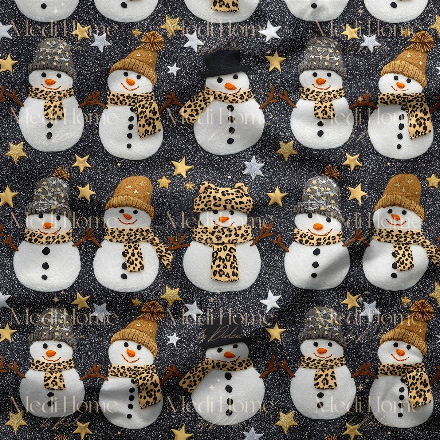 Leopar Şıklığındaki Kardan Adamlar Dijital Baskılı Kumaş (Untitled_Artwork 191)