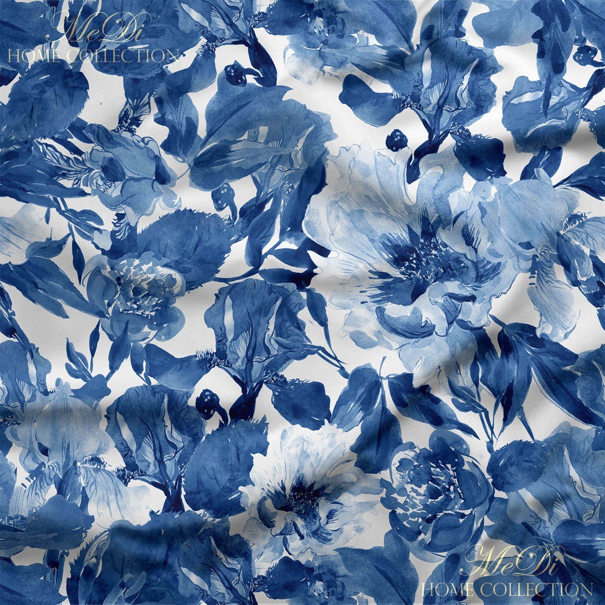 Sulu boya tekniğiyle boyanmış gibi görünen bu özel desen, adeta bir sanat tablosu havasında. Mavi tonlarının huzur veren geçişleriyle bezenmiş çiçekler, bembeyaz zemin üzerinde dans ederken hem zarif hem de iddialı bir görünüm sunuyor.