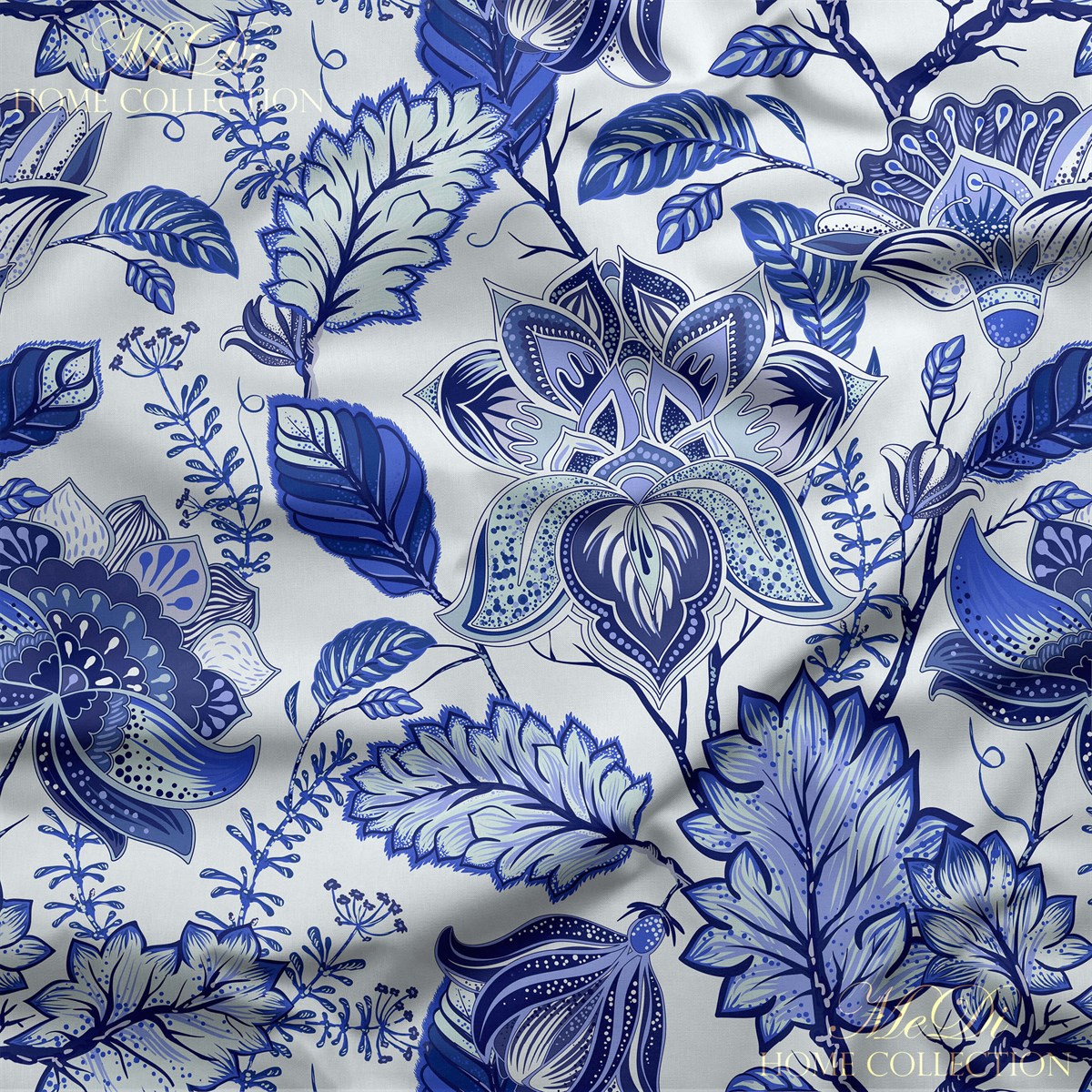 Mavi Mürekkepte Etnik Rüyalar, sanki bir çini ustasının zarif ellerinden çıkmış gibi. Beyaz fon üzerine düşen mavi tonlarındaki etnik çiçekler ve yapraklar, desenin her köşesine incelikli bir zarafet yayıyor.