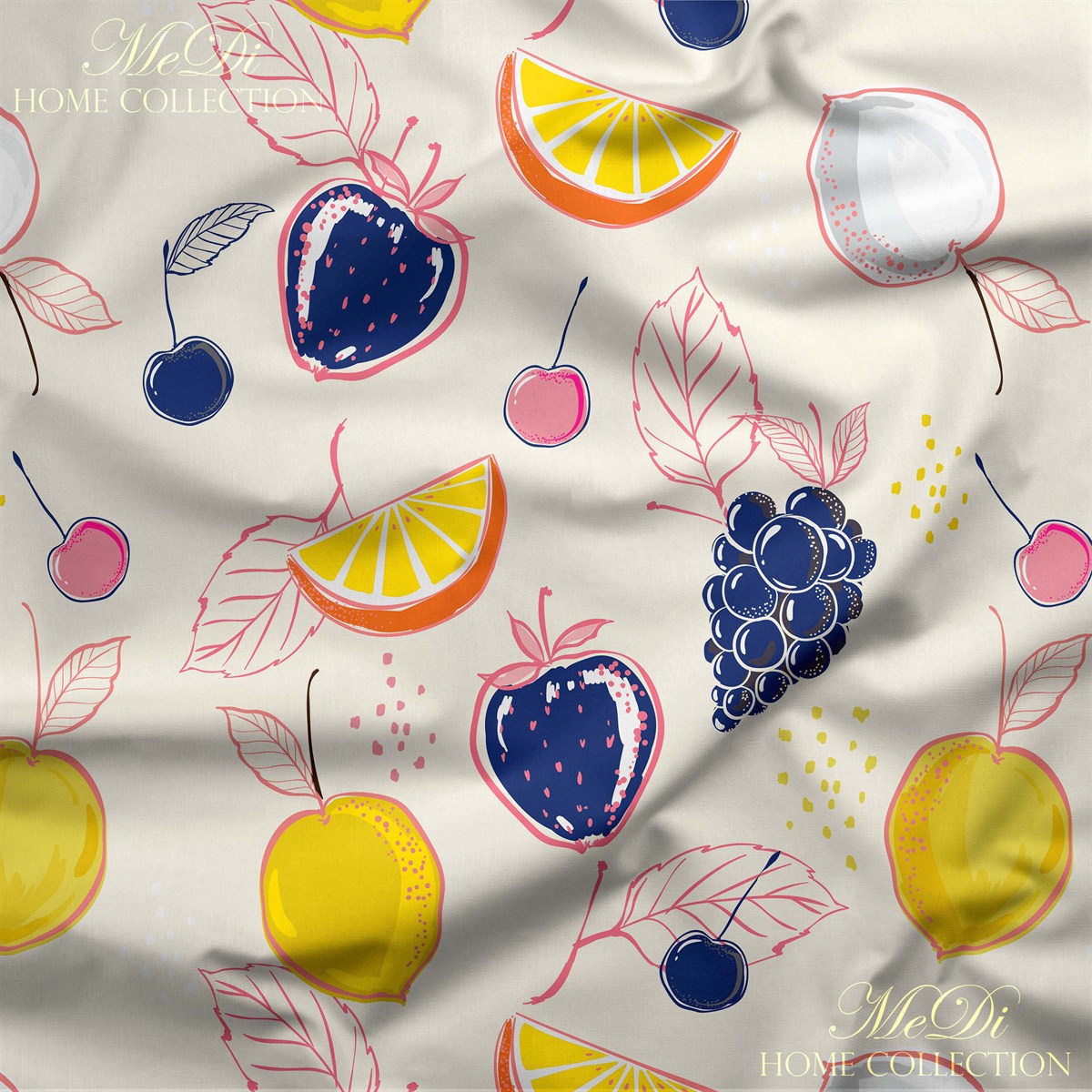 Meyve Çizimlerinin Neşeli Sofrası Dijital Baskılı Kumaş (ROSE 1227)