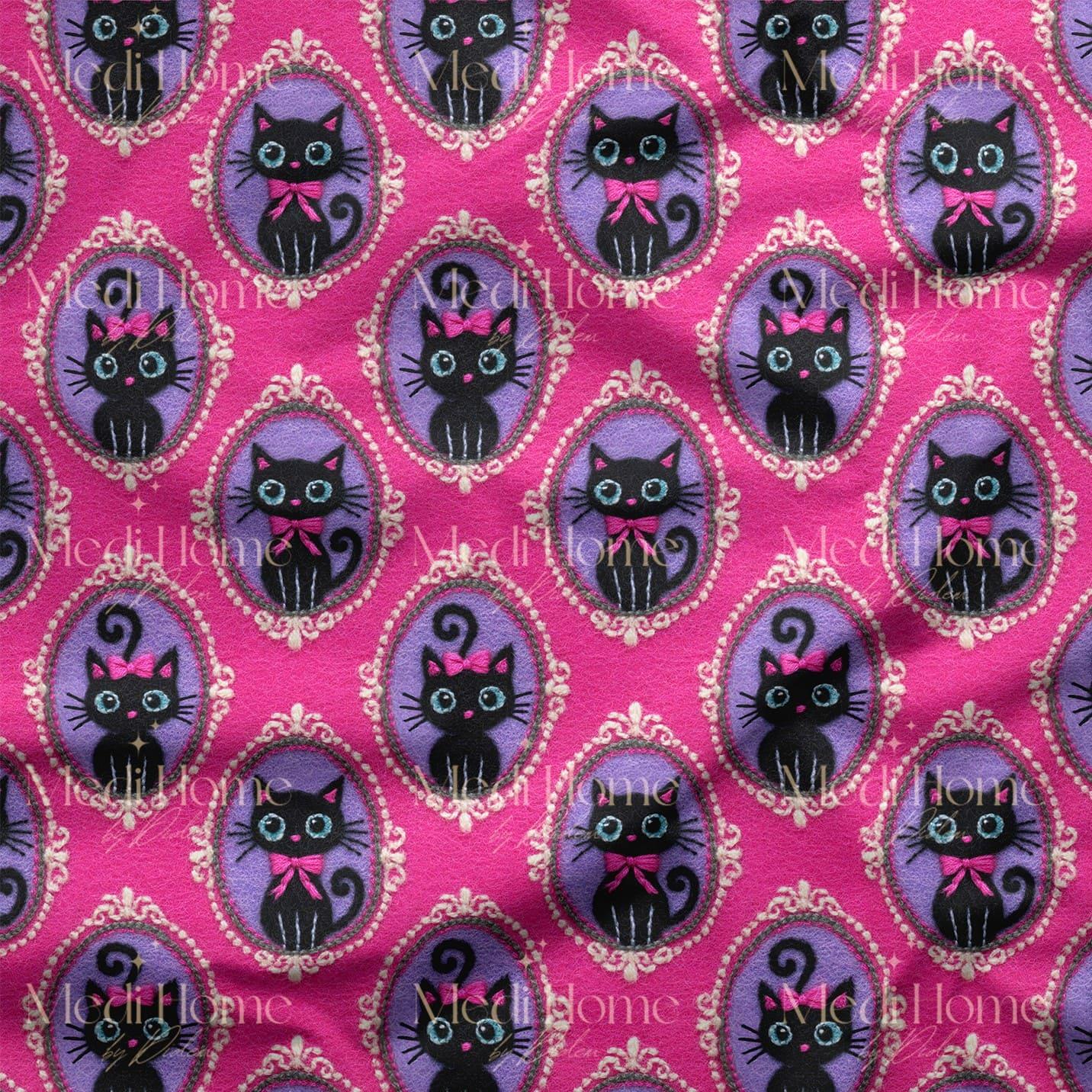 Mor Çerçevedeki Siyah Kediler Dijital Baskılı Kumaş (Untitled_Artwork 1899)
