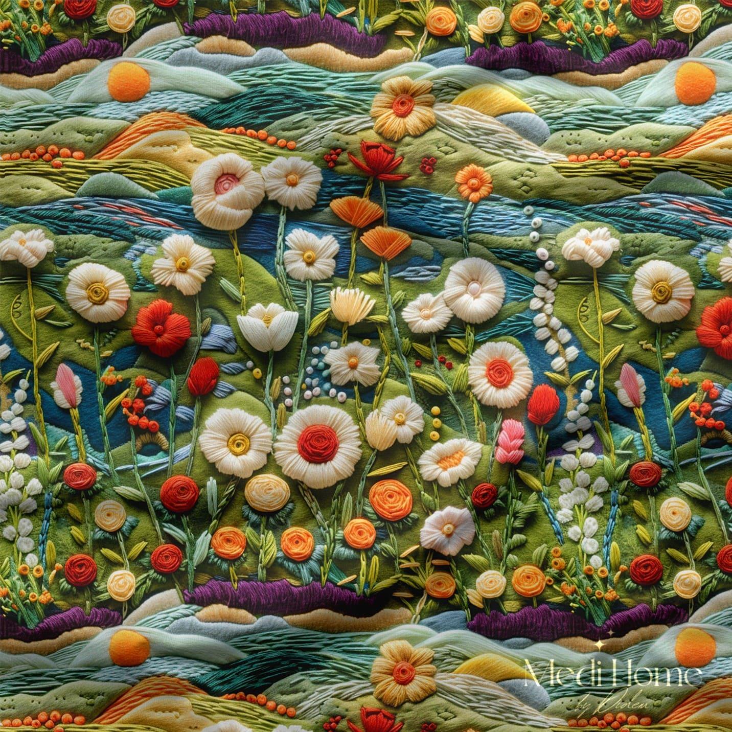 Nakışlı Kır Sabahı Dijital Baskılı Kumaş (Embriodery 22)
