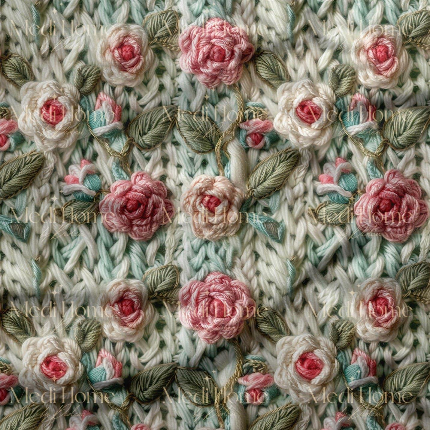Yumuşak nane yeşili örgü zemin üzerinde işlenmiş pembe ve krem tonlu güller, 3 boyutlu nakış efektli görünümüyle sanki özenle elde işlenmiş bir sanat eseri gibi duruyor. Ferahlatıcı yeşilin dinginliği ve güllerin romantik zarafeti, evinize taze ve huzurlu bir bahar dokusu katıyor.