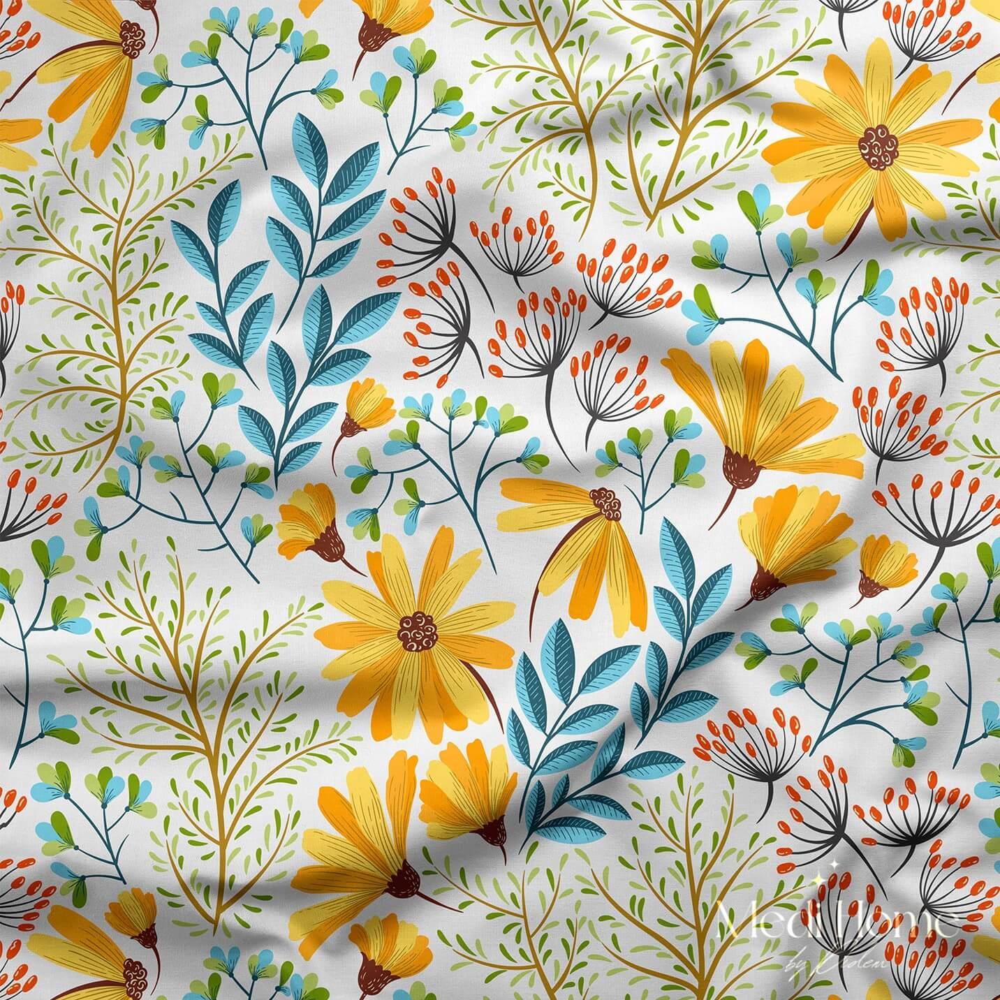 Neşeli Çiçeklerin Bahar Dansı Dijital Baskılı Kumaş (ALTIN BAHAR 50)