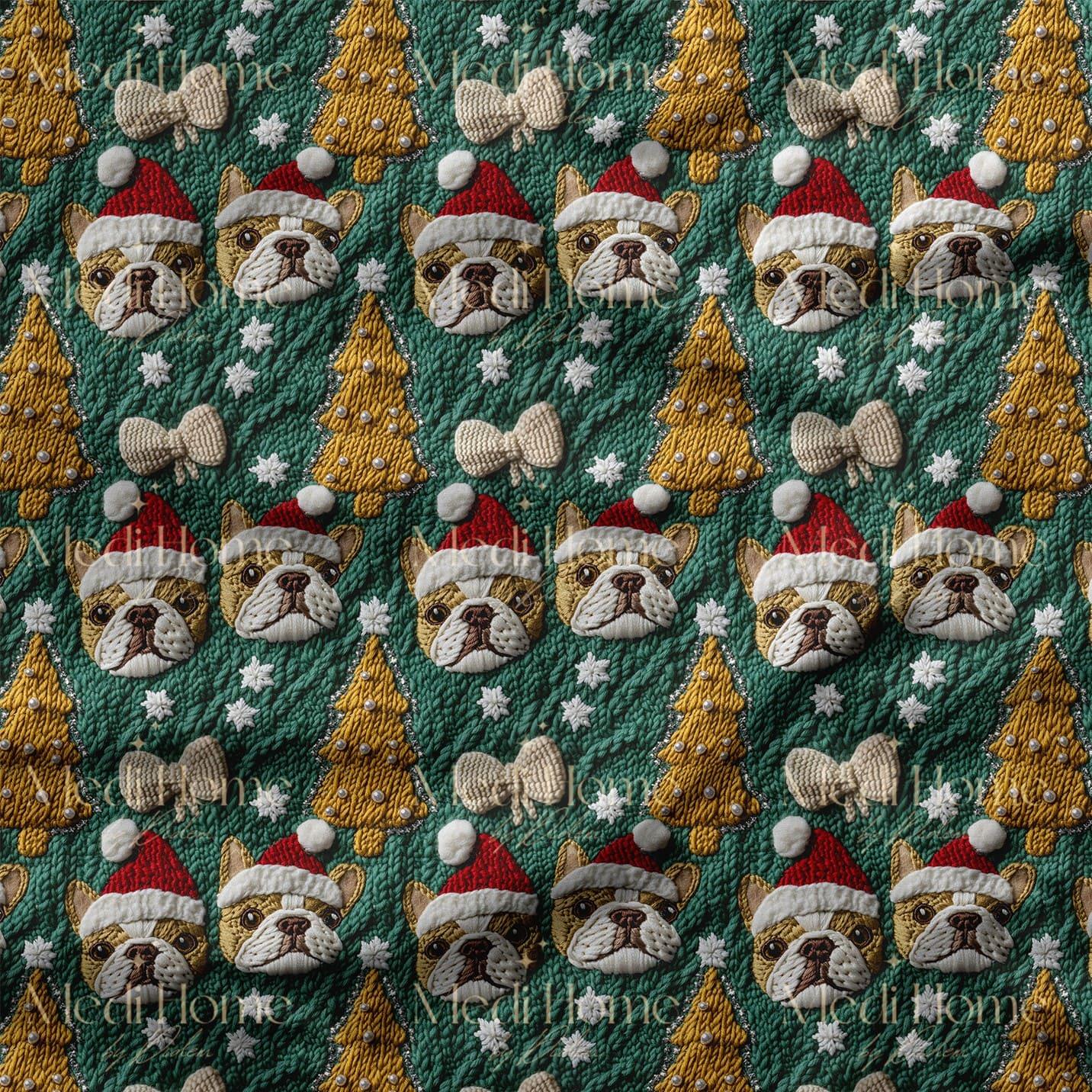 Noel Şapkasıyla Fransız Bulldoglar Dijital Baskılı Kumaş (Untitled_Artwork 250)