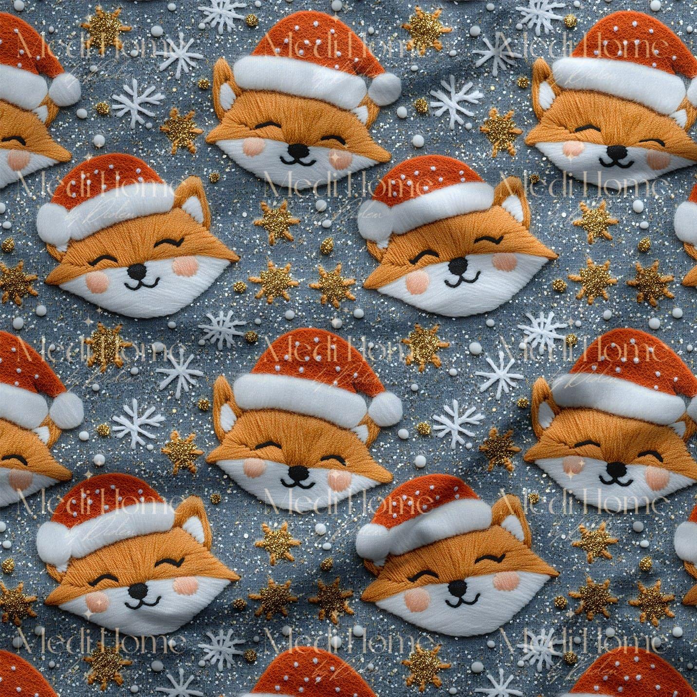 Noel Şapkasıyla Tilki Masalı Dijital Baskılı Kumaş (Untitled_Artwork 332)