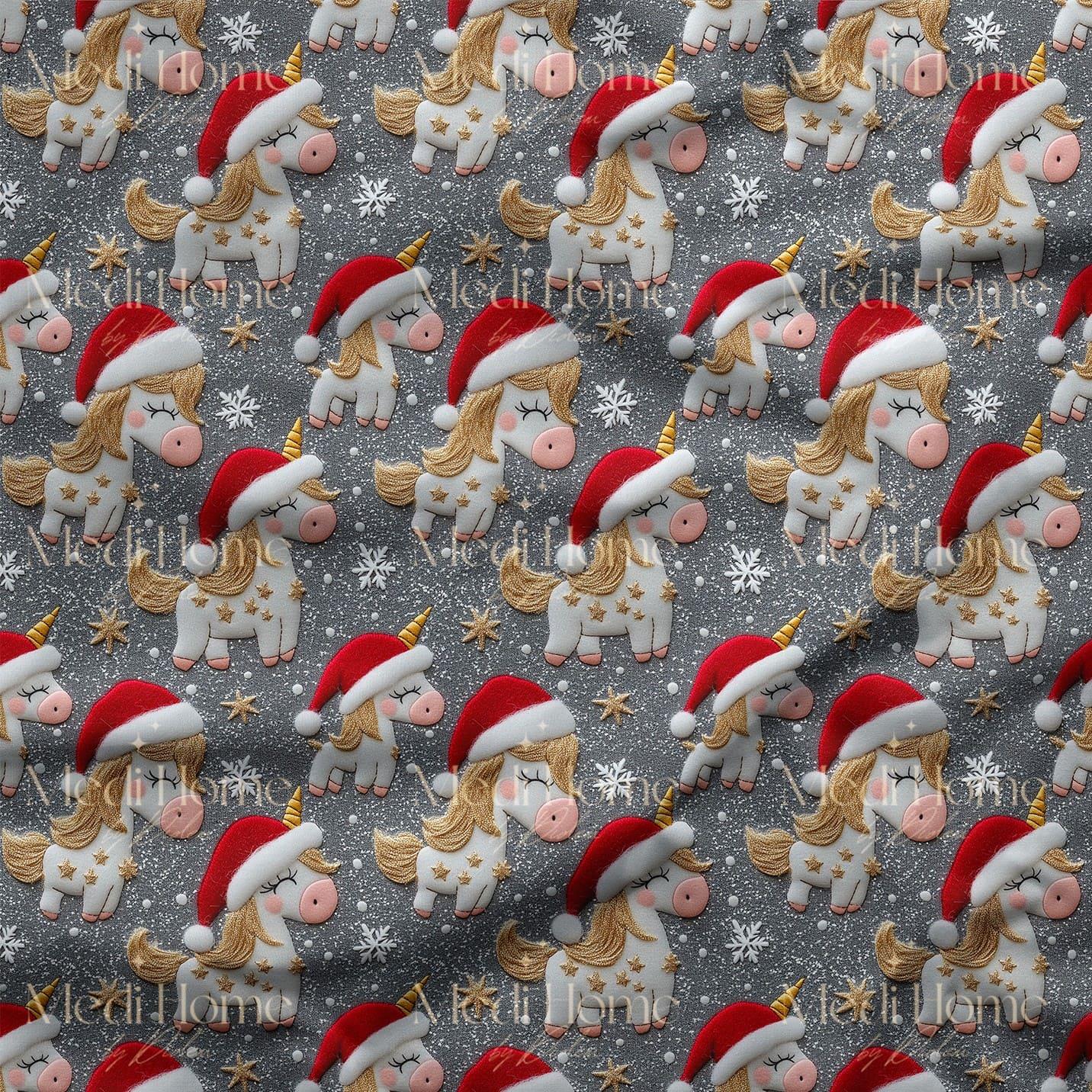 Noel'in Masalsı Tekboynuzları Dijital Baskılı Kumaş (Untitled_Artwork 26)