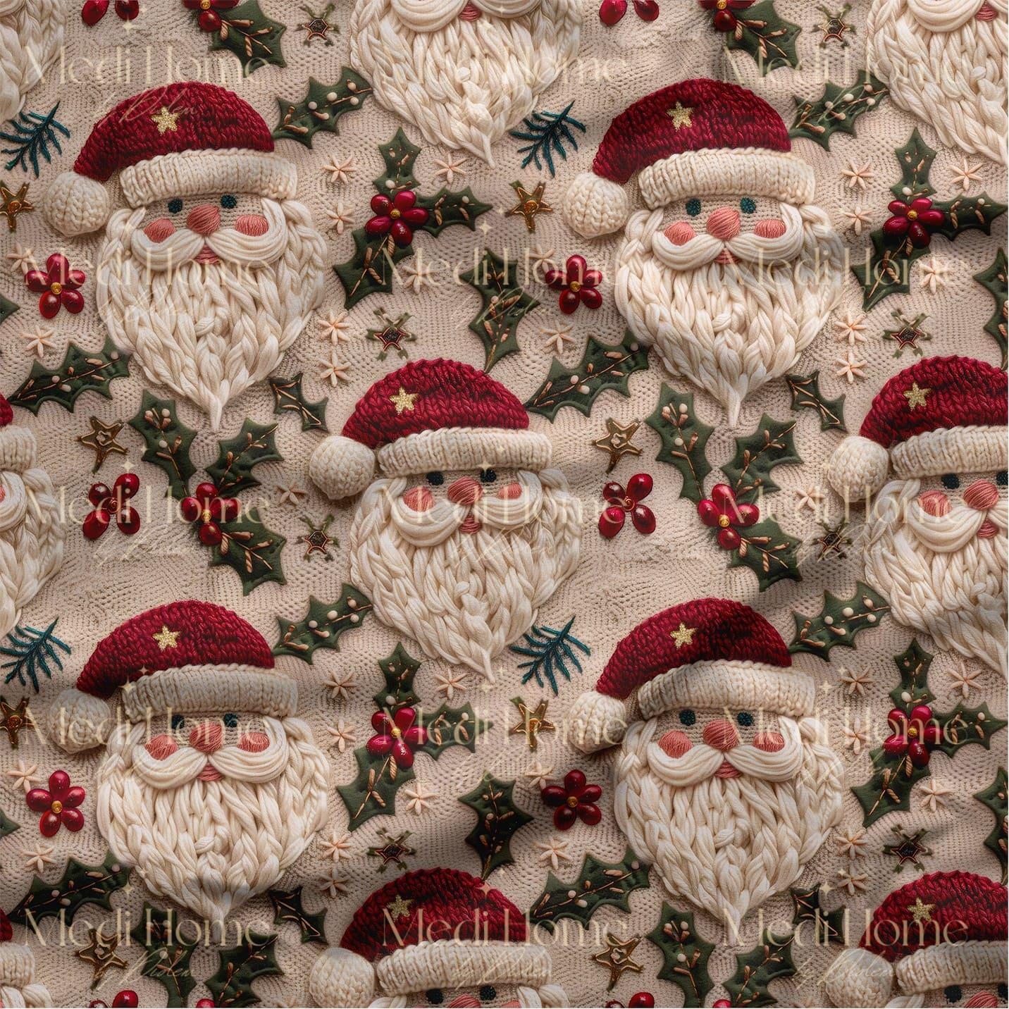 Örgü Kalpli Noel Baba Dijital Baskılı Kumaş