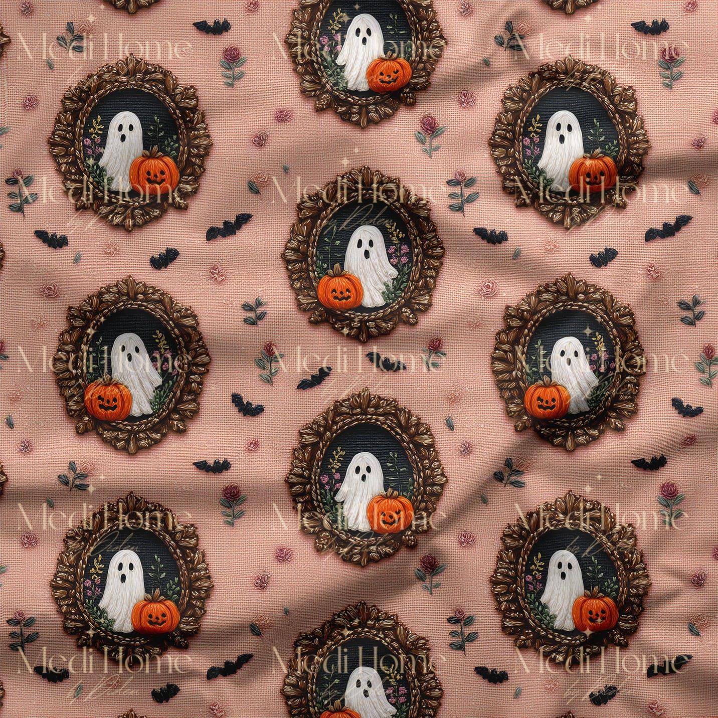 Pudra Çerçevedeki Balkabağı Hayaletler Dijital Baskılı Kumaş (Untitled_Artwork 1856)