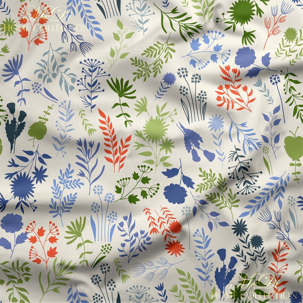 Bir tablonun içinden kopup gelmiş gibi duran bu dijital baskılı kumaşta doğanın tüm renkleri bir araya geliyor. Beyaz zemin üzerine yerleştirilmiş mavi, yeşil, kırmızı ve mor tonlarındaki çiçekler ve yapraklar; özgür bir doğa yürüyüşünü, keyifli bir yaz gününü anımsatıyor.