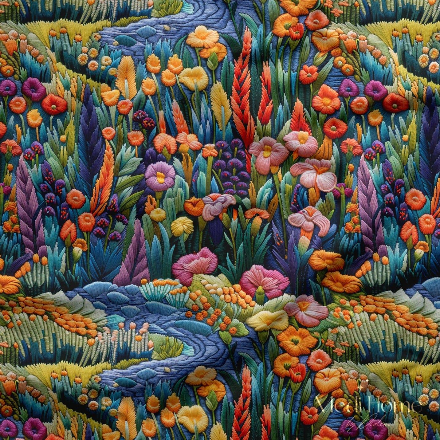 Renklerin Senfonisi: Çiçeklerle 3D Orman Dijital Baskılı Kumaş (Embriodery 16)