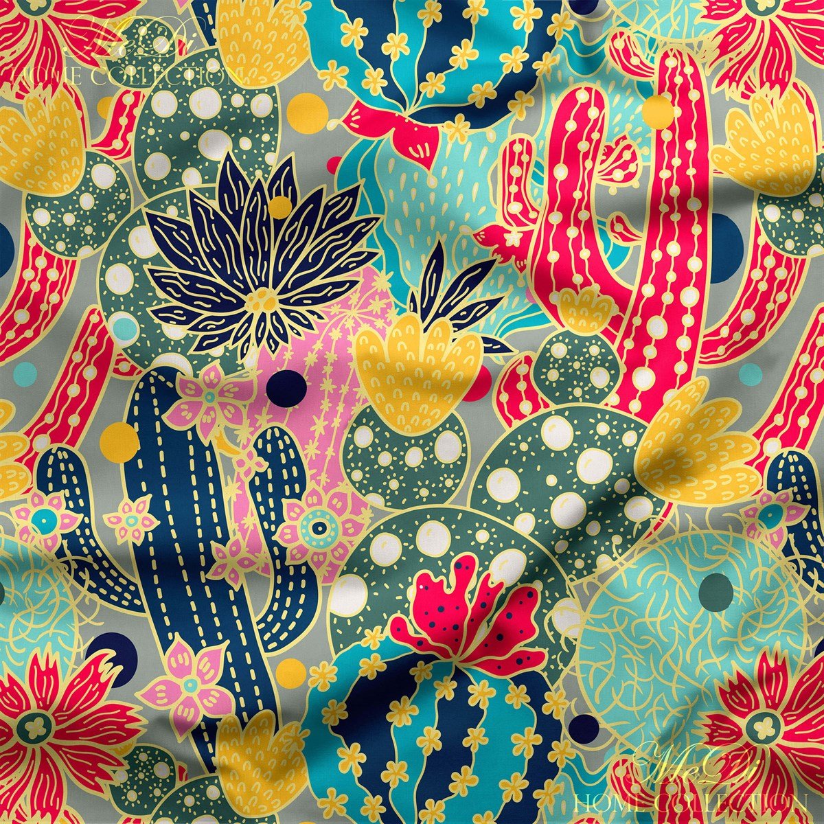 Renkli Kaktüslerin Nakışlı Rüyası Dijital Baskılı Kumaş (ROSE 1239)