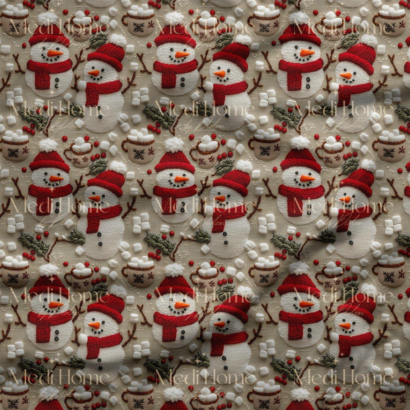 Sıcak Kakaolu Kardan Adamlar Dijital Baskılı Kumaş (Untitled_Artwork 212)