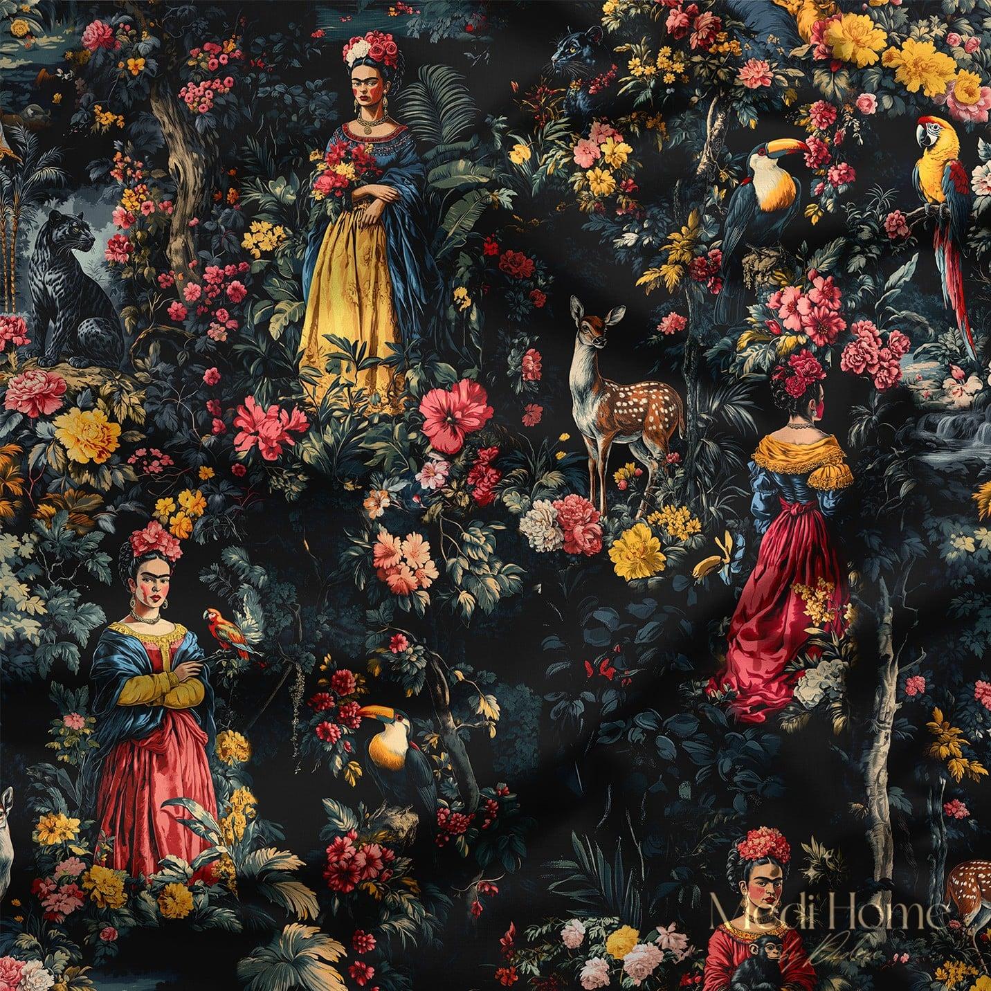 Siyah Ormanda Frida'nın Rüyası – Mini Versiyon Dijital Baskılı Kumaş (FRIDA-PATTERN-HIGH-THRESHOLD küçük)