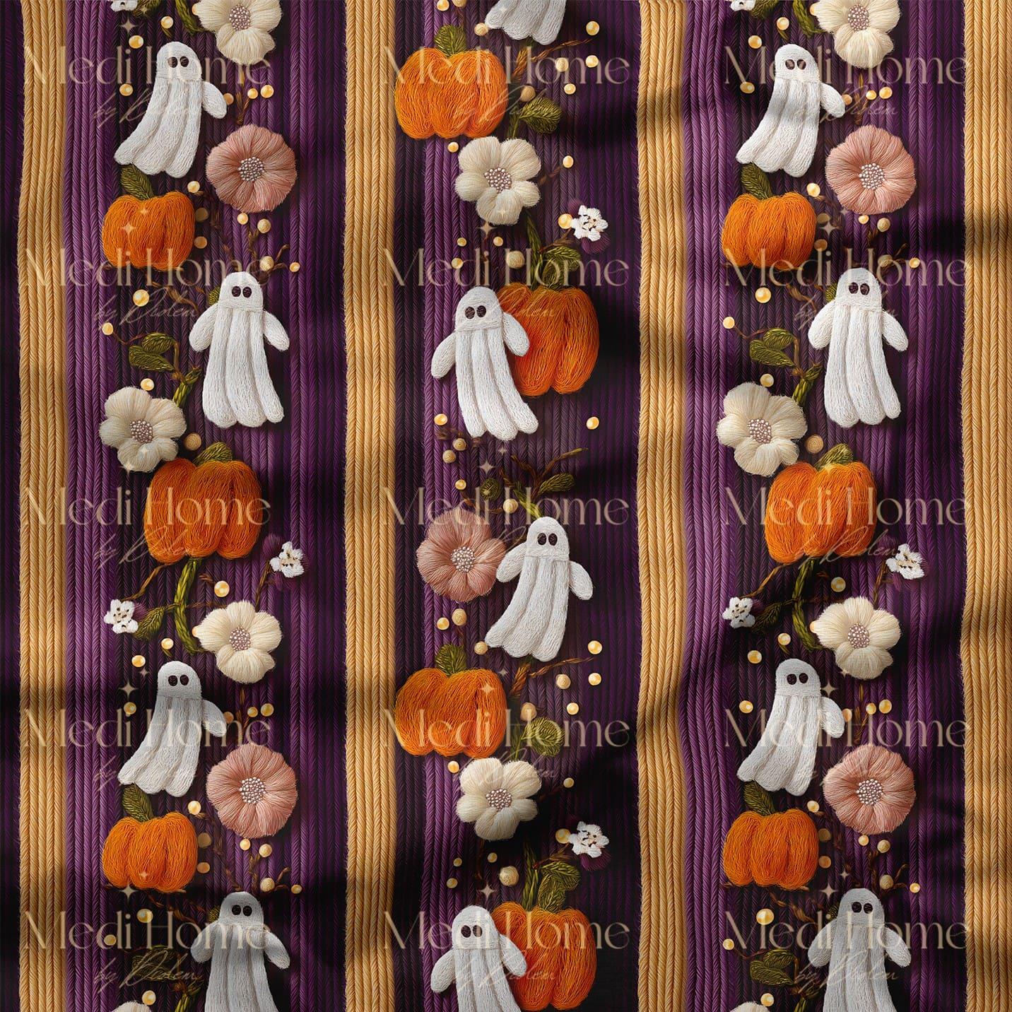 Sonbahar Balkabağı ve Sevimli Hayaletler Dijital Baskılı Kumaş (Untitled_Artwork 1705)