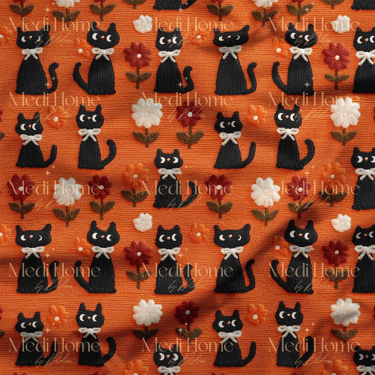 Sonbahar Büyüsünde Siyah Kediler Dijital Baskılı Kumaş
