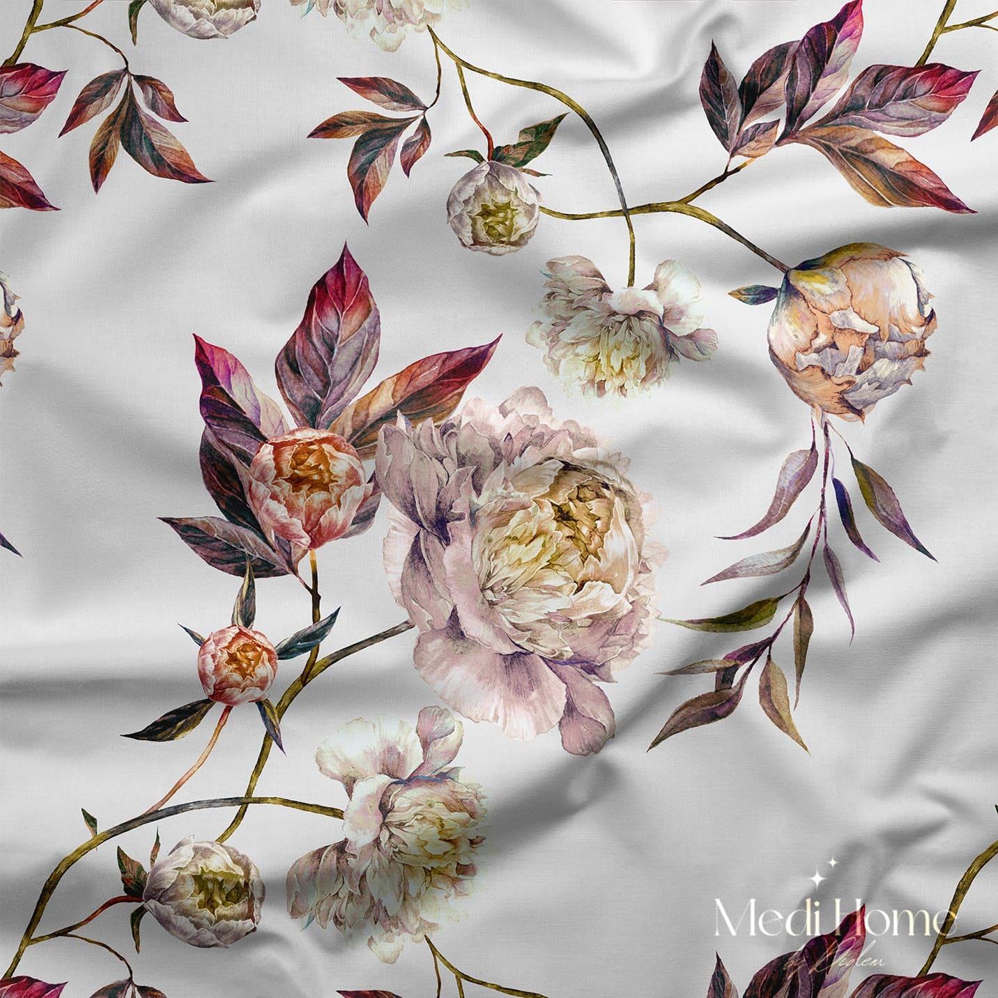 Sonbahar Güllerinin Zarif Dansı Dijital Baskılı Kumaş