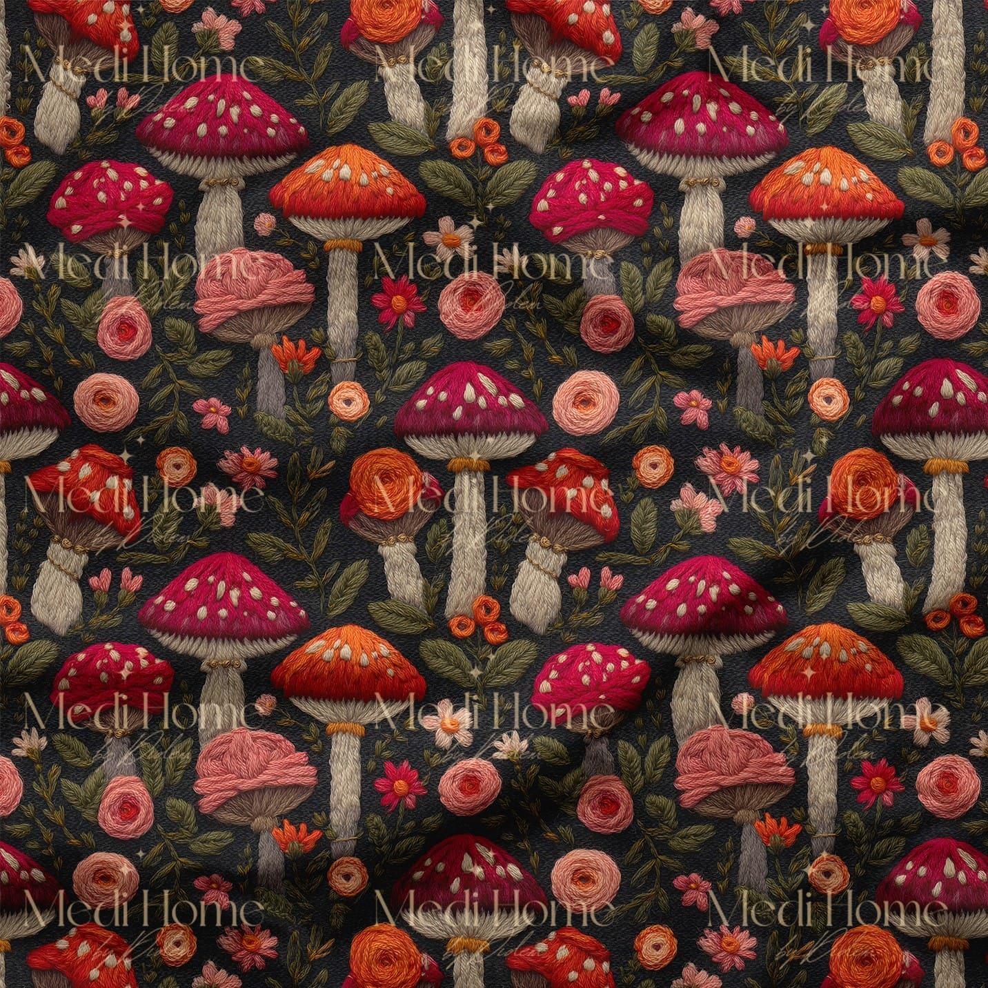 Sonbahar Ormanında Mantar Rüyası Dijital Baskılı Kumaş (Mushroom-2)