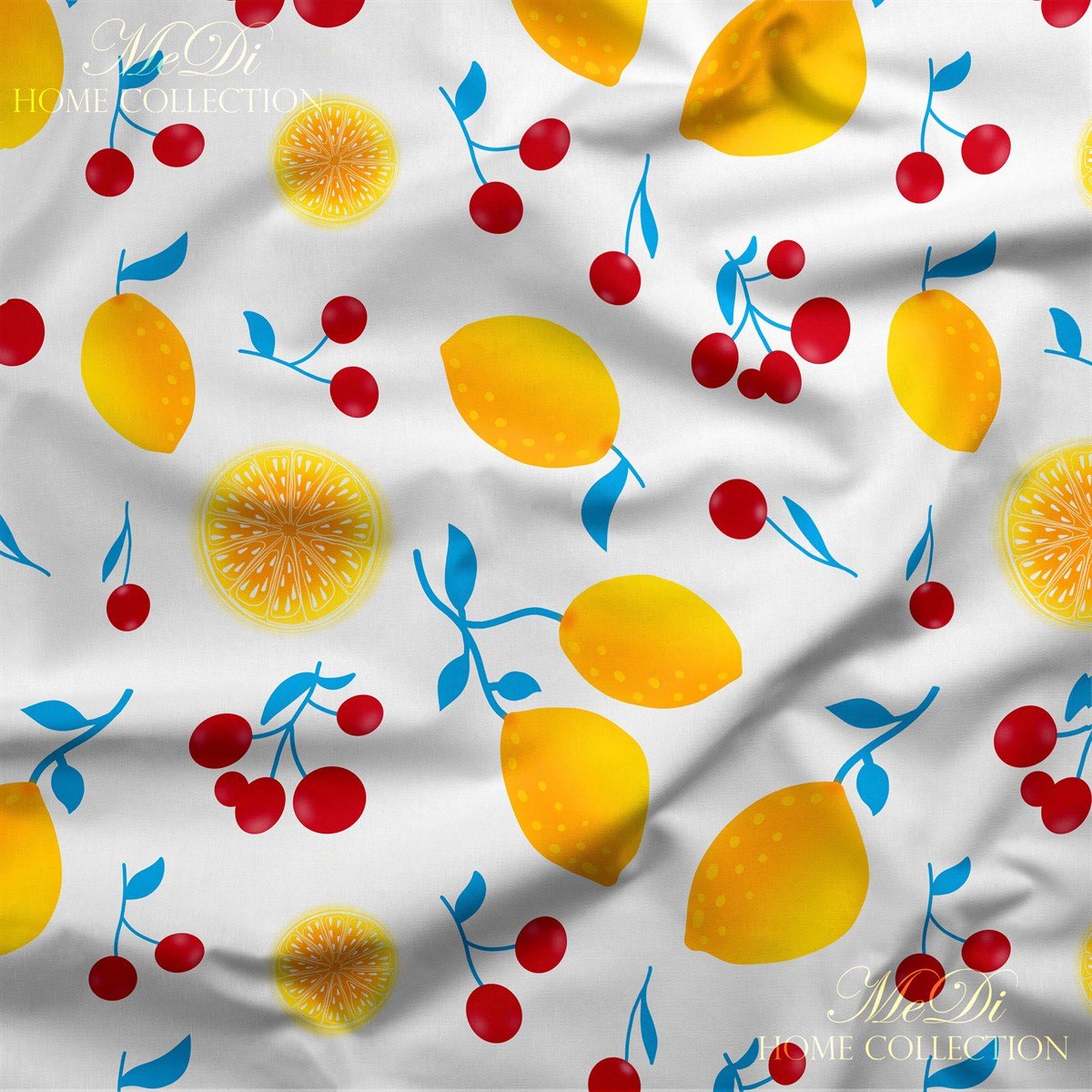 Limon ve Kiraz Çizimi Desenli Dijital Baskılı Kumaş