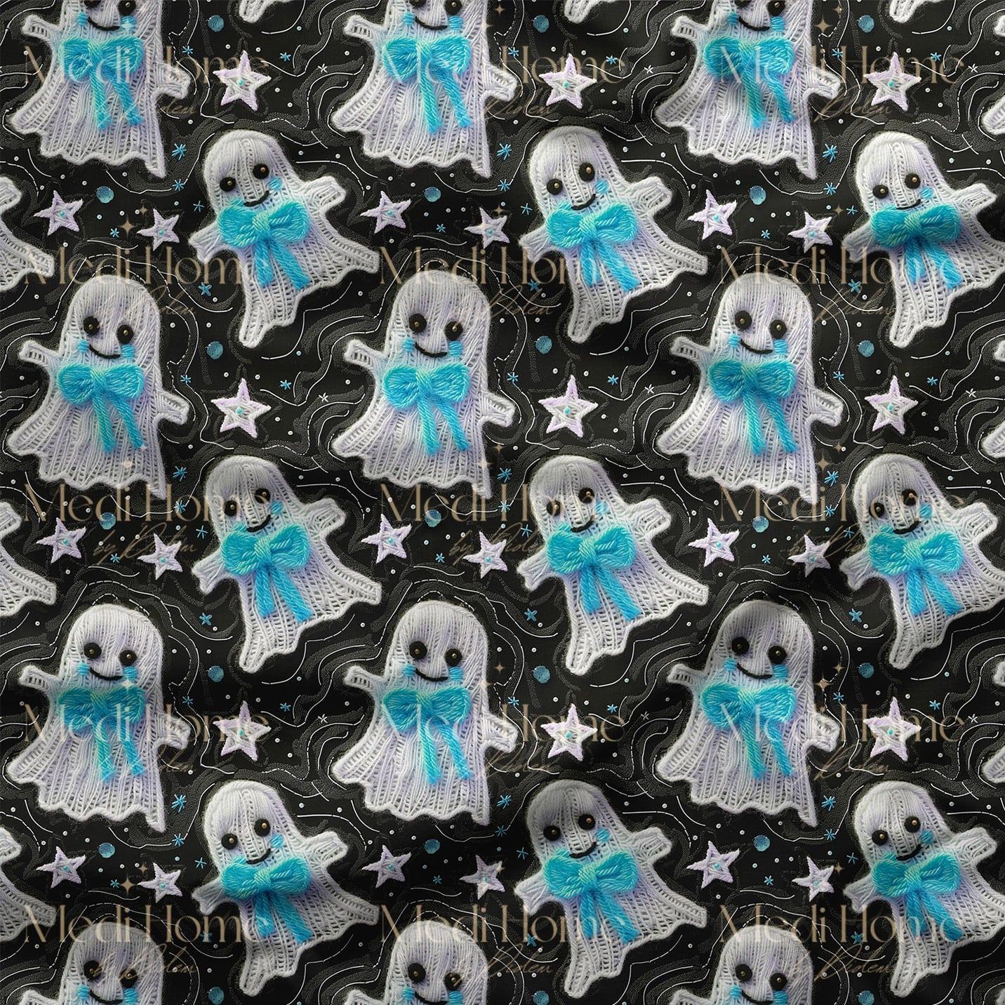 Yıldızlı Gecede Mavi Fiyonklu Tatlı Hayaletler Dijital Baskılı Kumaş (Untitled_Artwork 1456)