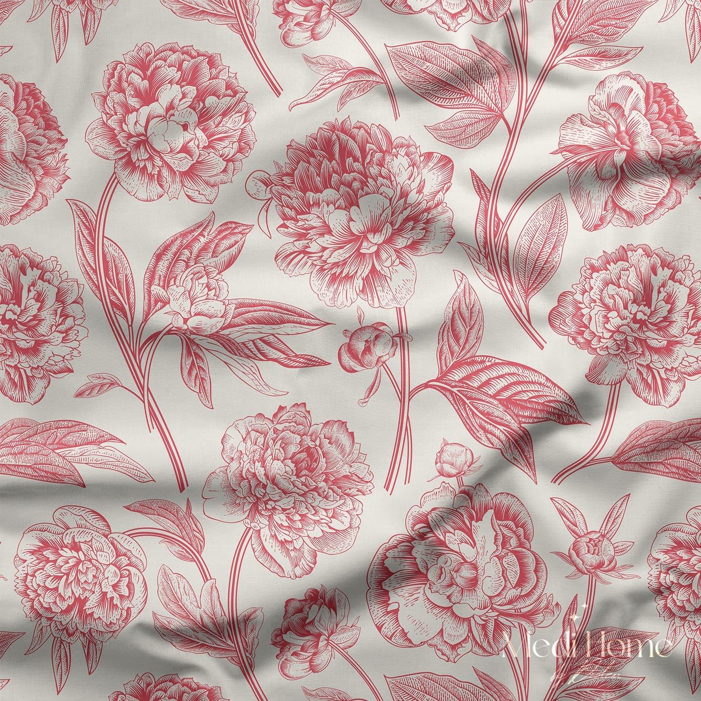 “Zarif Baharın Kırmızı Çizgisi”, klasik çizgilerle modern şıklığın birleştiği o özel desenlerden biri. Açık tonlu bir zemin üzerine ustaca çizilmiş kırmızımsı çiçekler ve yaprak detayları, sanki eski bir gravür kitabından çıkarak kumaşa yansımış gibi. Geniş formlu çiçeklerin yanında ince yapraklar ve zarif dallar da adeta bir bahar senfonisi oluşturuyor.